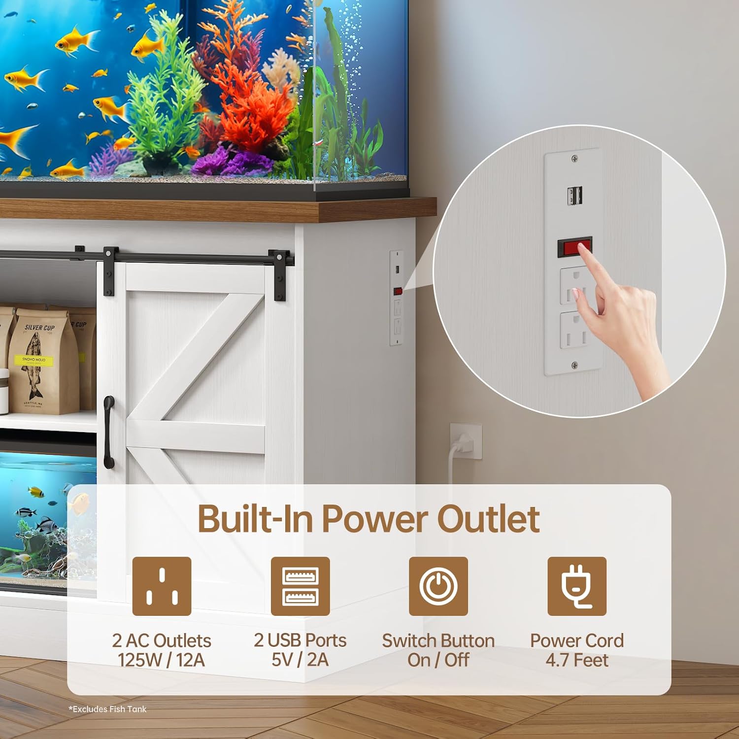 55-75 Gallon Fish Tank Stand with Sliding Barn Doors & Power Outlet, Heavy Duty Aquarium Stand with Cabinet Storage for Fish Tank, Turtle Tank, Reptile Terrarium, 1000LBS Capacity, White