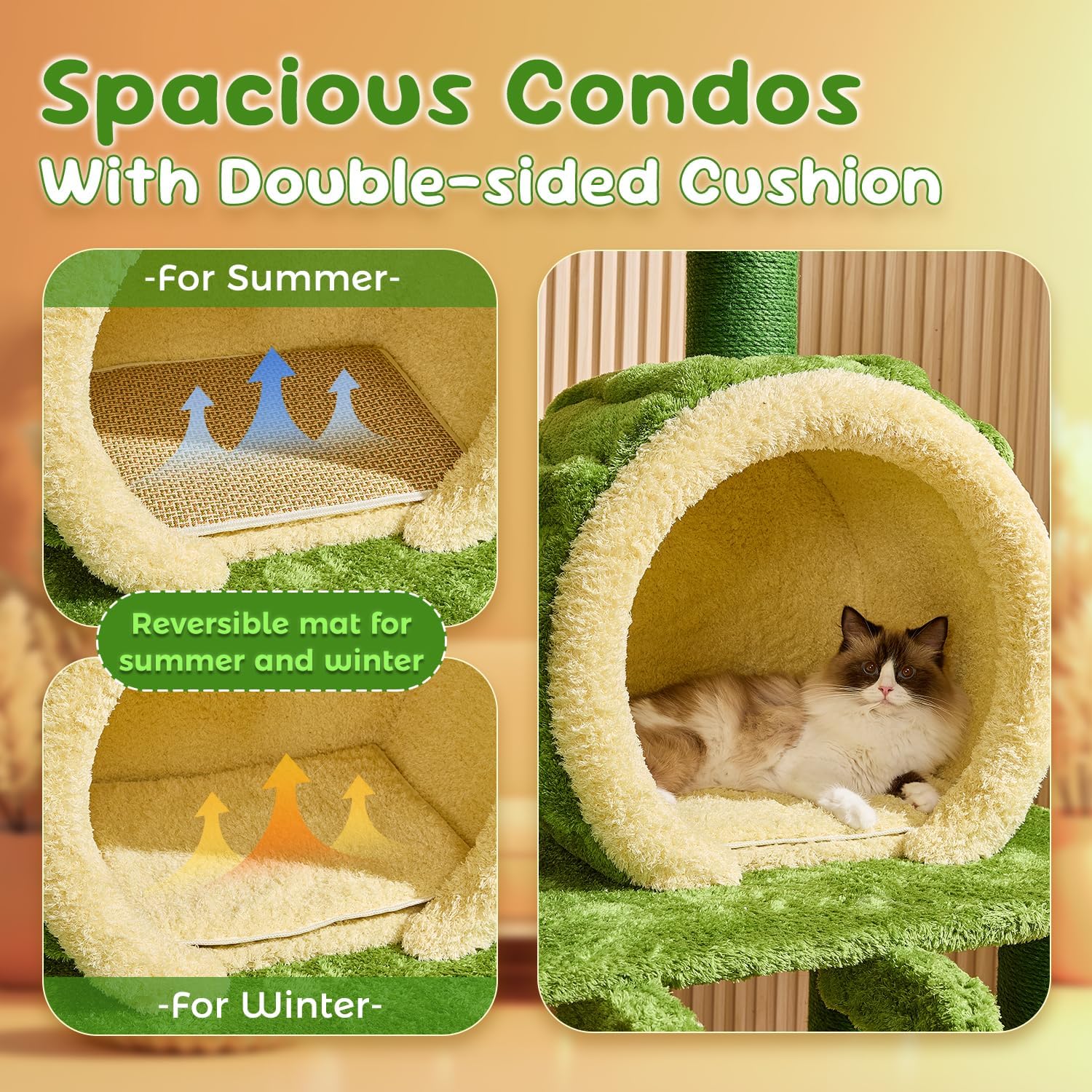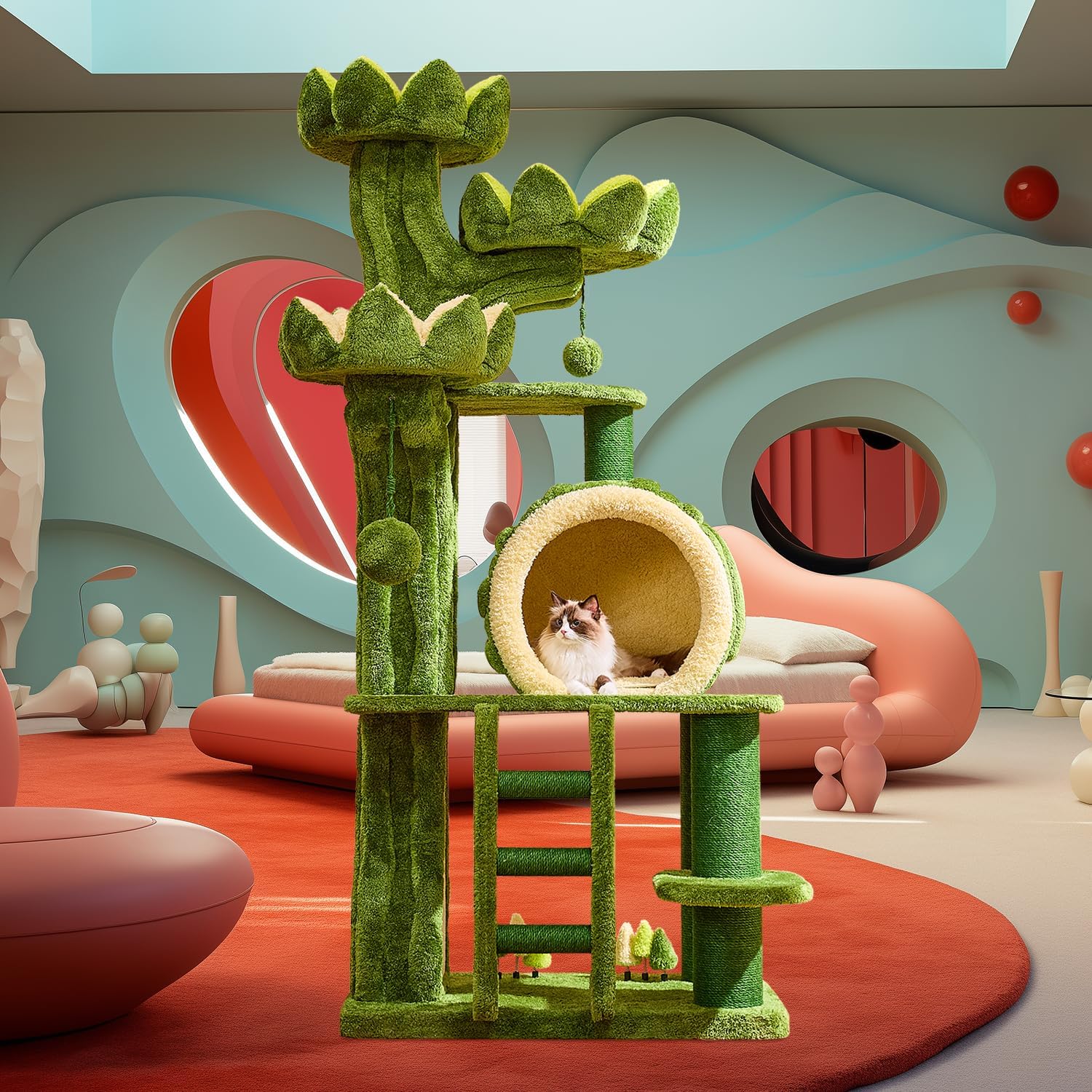 - 【Ideal for Multi-cat Families】The cat tree is an ideal choice for multi-pet households, accommodating 4-7 cats to rest or play together. It features 2 hidden cat food cave, 3 lotus perches, multiple play platforms, funny toy balls and large cat condo with double sided mat, providing ample space for your pets to enjoy climbing.