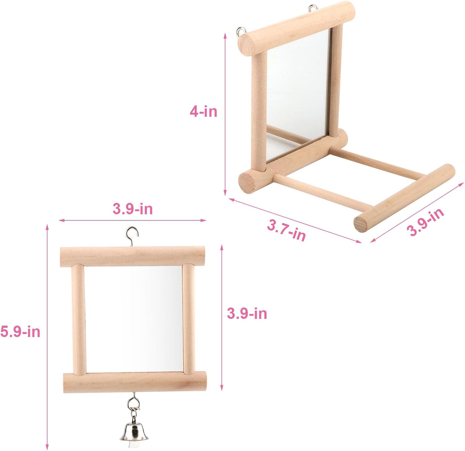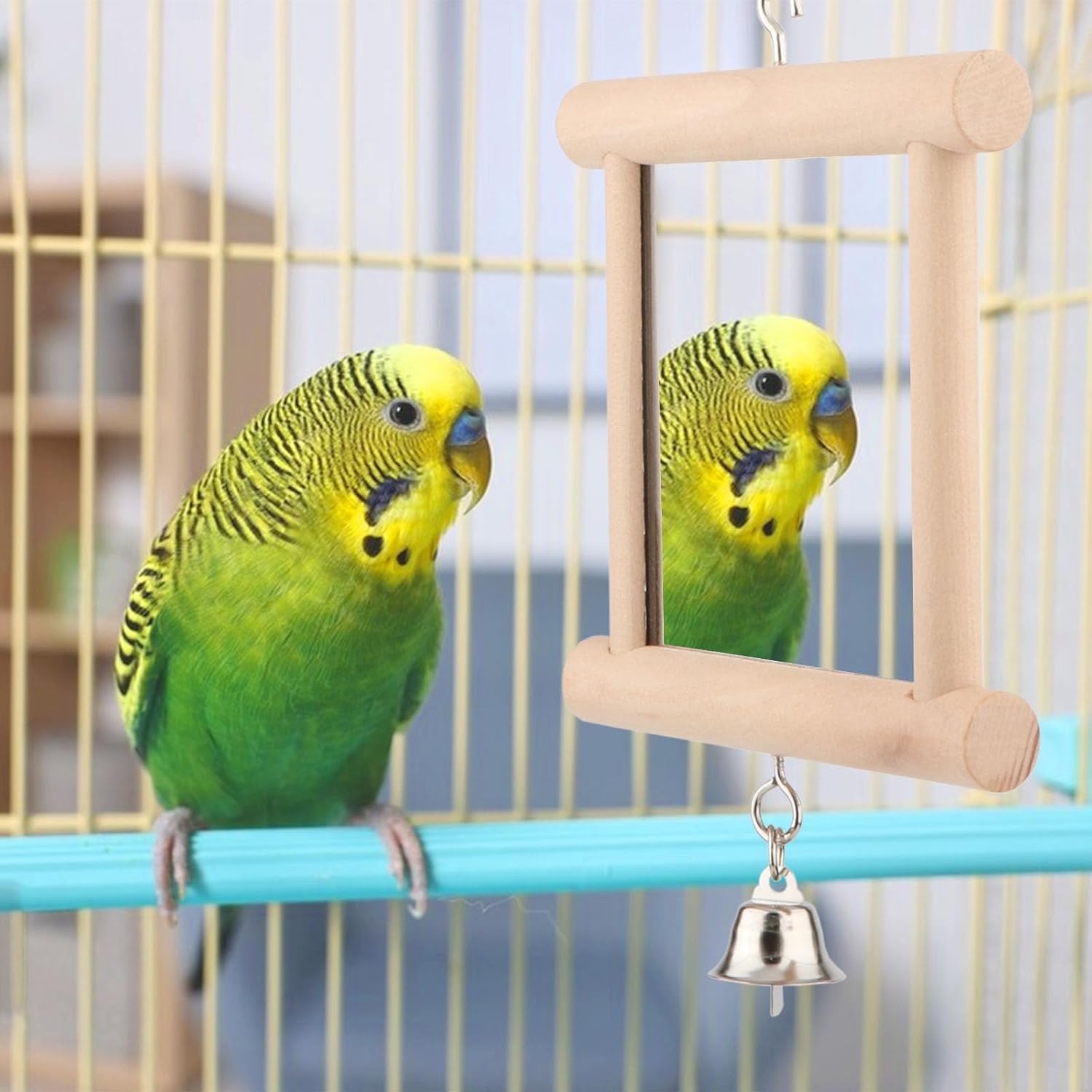 Wontee Bird Mirror Bird Toys for Budgies Parakeets Cockatiels Lovebirds Conures (Wood color-2pcs)