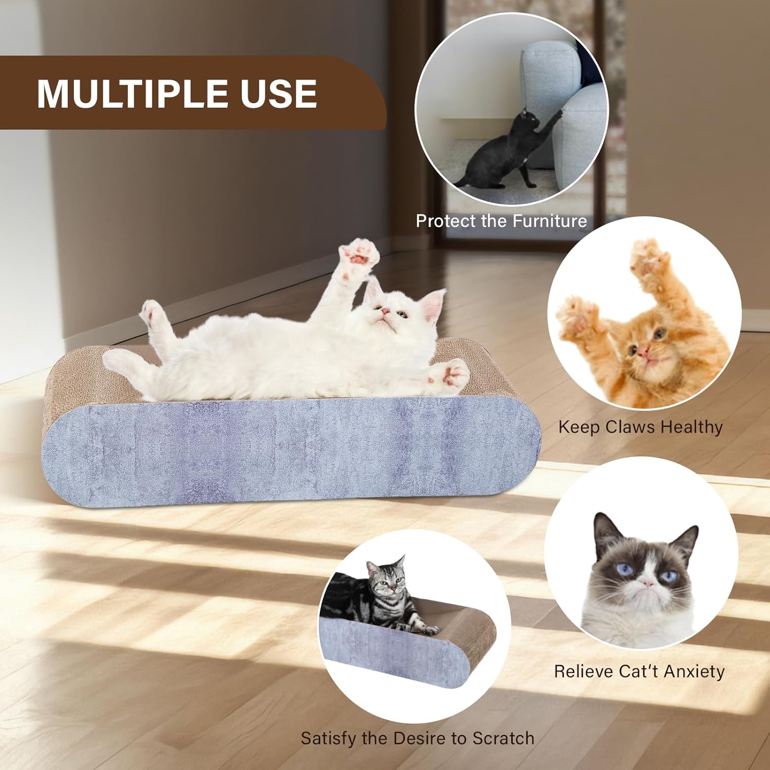 - REST & PLAY: This cardboard can be used as a scratching pad or a lounge bed for your cats. It is a better choice for cats to exercise, rest, scratch, stretch to keep overall healthy.