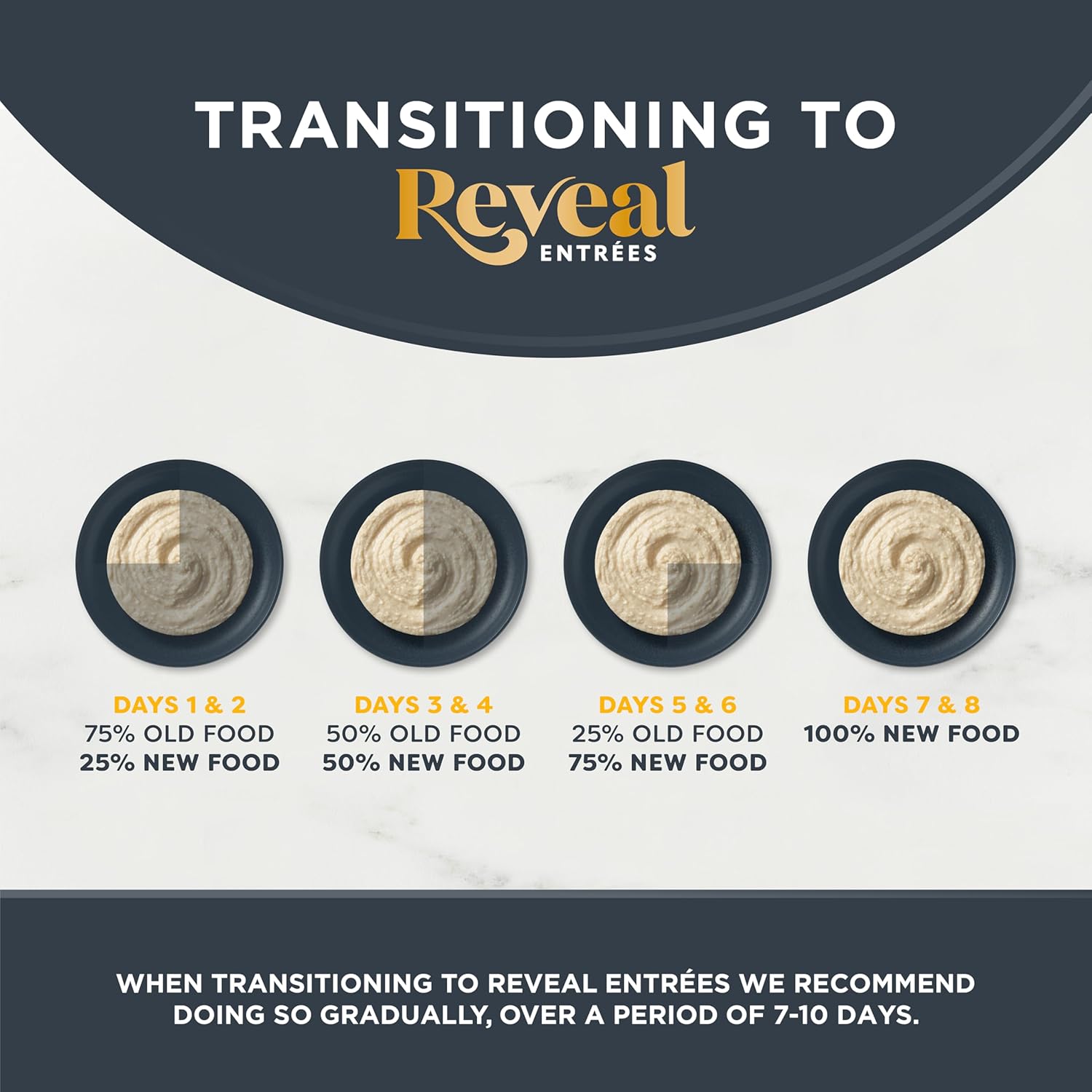 - No Artificial Colors, Flavors, or Preservatives: Made with natural ingredients with added vitamins and minerals, Reveal Entrées is free from additives providing a delicious balanced meal that is sure to make mealtime the highlight of your cats day.