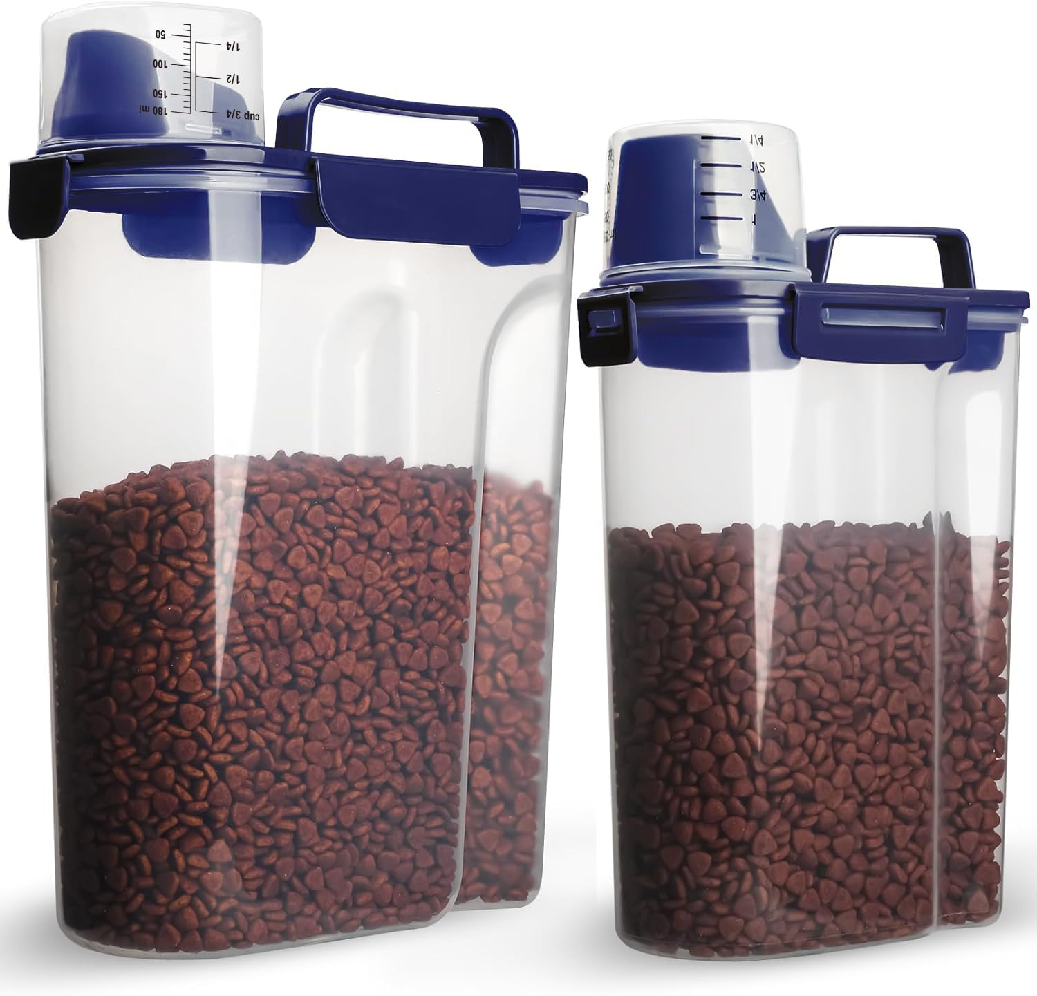 Dog Food Storage Container, 5-7 Lbs Airtight Pet Food Container, Cat Food Container Dispenser with Portable Handle, Pouring Spout and 4 Seal Buckles for Dogs Cats 2 Pack Blue