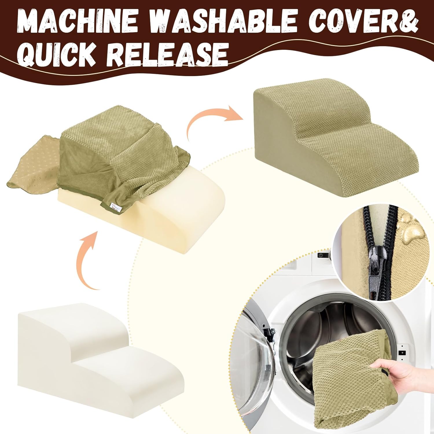 - Double Sided Anti Slip: The dog steps cover is made of corduroy with greater friction than other fabrics, which provides extra grip while in use, the bottom features nonslip rubber dots, preventing pets from sliding while climbing, providing pets with double safety protection