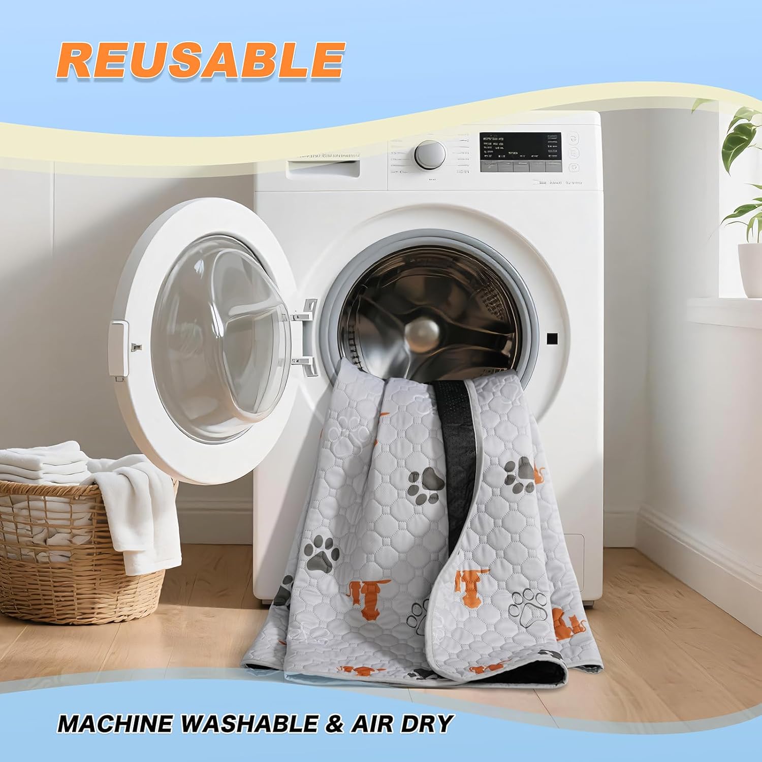 - MACHINE WASHABLE - Say goodbye to disposable pads! These washable puppy pads can be machine washed and reused, saving you money and reducing waste. Whether you're using them for potty training or as an indoor mat for your dog's sleeping area, these pads are built to last. Quick and easy cleaning makes them the perfect solution for busy pet owners.
