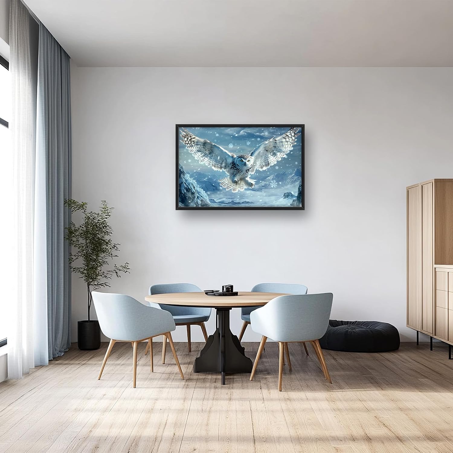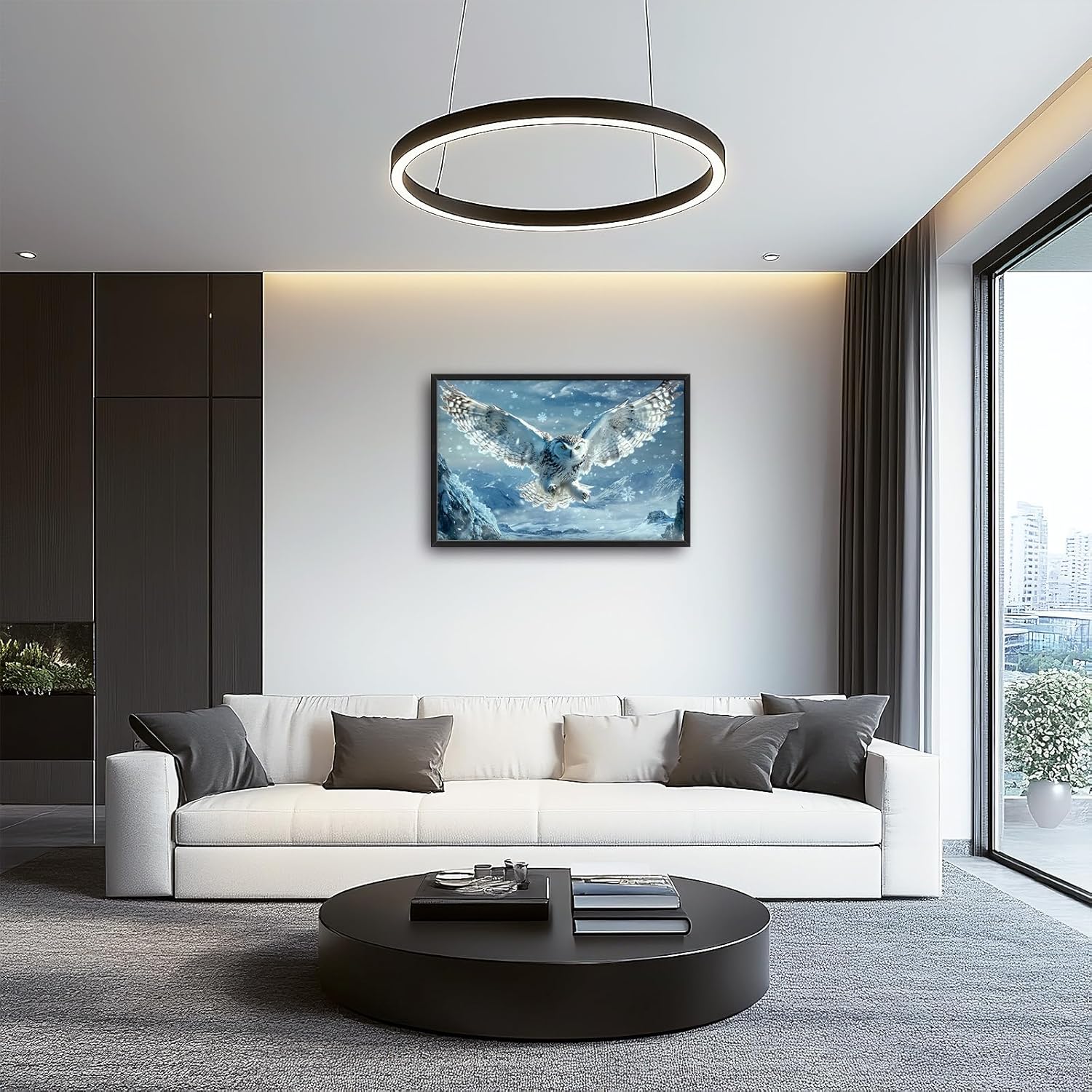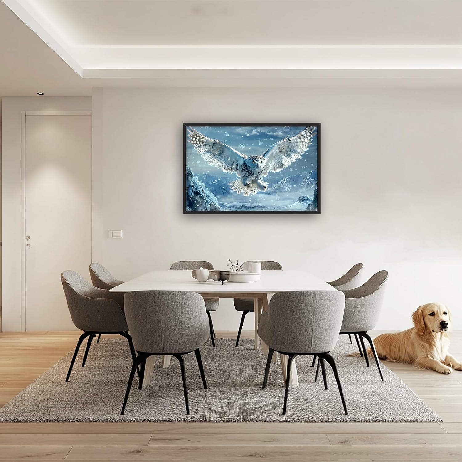 Framed Large Snowy Owl Wall Art for Living Room, Oversized Snowy Mountain Wall Decor Landscape Canvas Painting Modern Artwork Home Decoration for Living Room Bedroom Office 36"x24"