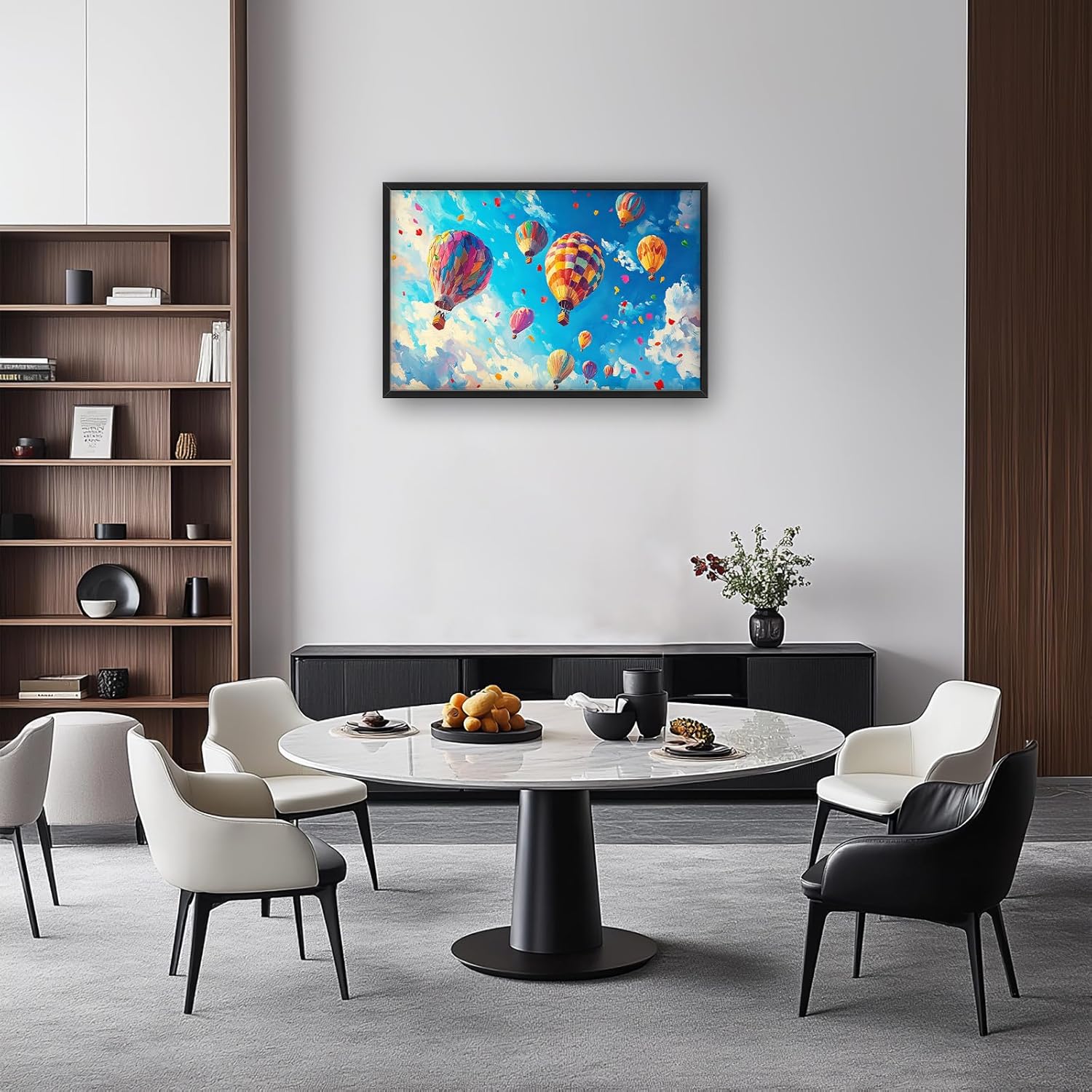 Hot Air Balloon Large Wall Art for Living Room, Framed Oversized Hot Air Balloon Wall Decor Colorful Sky Canvas Painting Modern Artwork for Living Room Bedroom Office Dinging Room 36"x24"