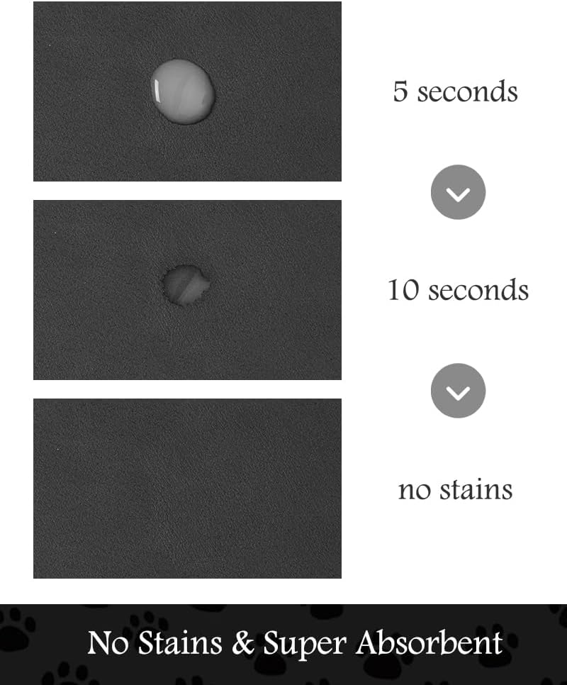 - Super Absorbent & Durable: Perfect pet supplies.This pet food mat can prevent liquid from overflowing. Super absorbent and quick-drying ability to avoid wetting pet paws even for messy drinkers. Sturdy dog & cat food bowl mat cannot be torn easily and avoid eating by mistake. Keep the pet's eating environment tidy and clean.