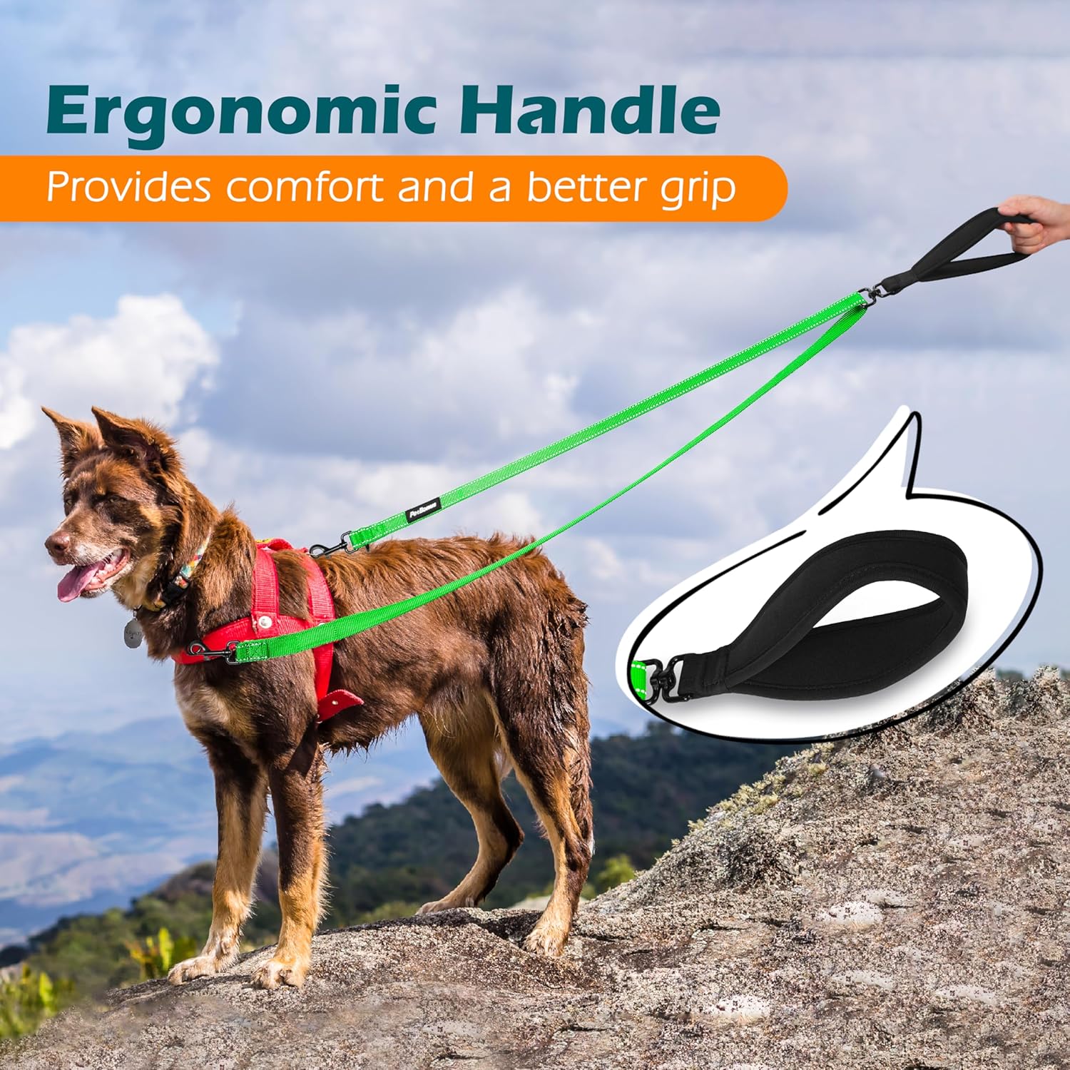 - Comfortable and soft Handle: Ergonomically designed soft padded handles make you hand feel comfort and soft, reducing the pressure of the owner walking the dog and making training easier