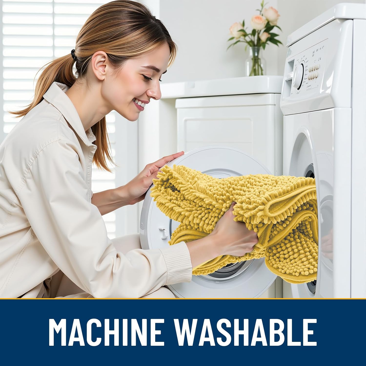 Smiry Dog Door Mat for Muddy Paws 30x20, Absorbs Moisture and Dirt Doormat, Non-Slip Washable Quick Dry Chenille Front Door Mat Indoor Entrance, Entryway Carpet for Inside Floor, Yellow