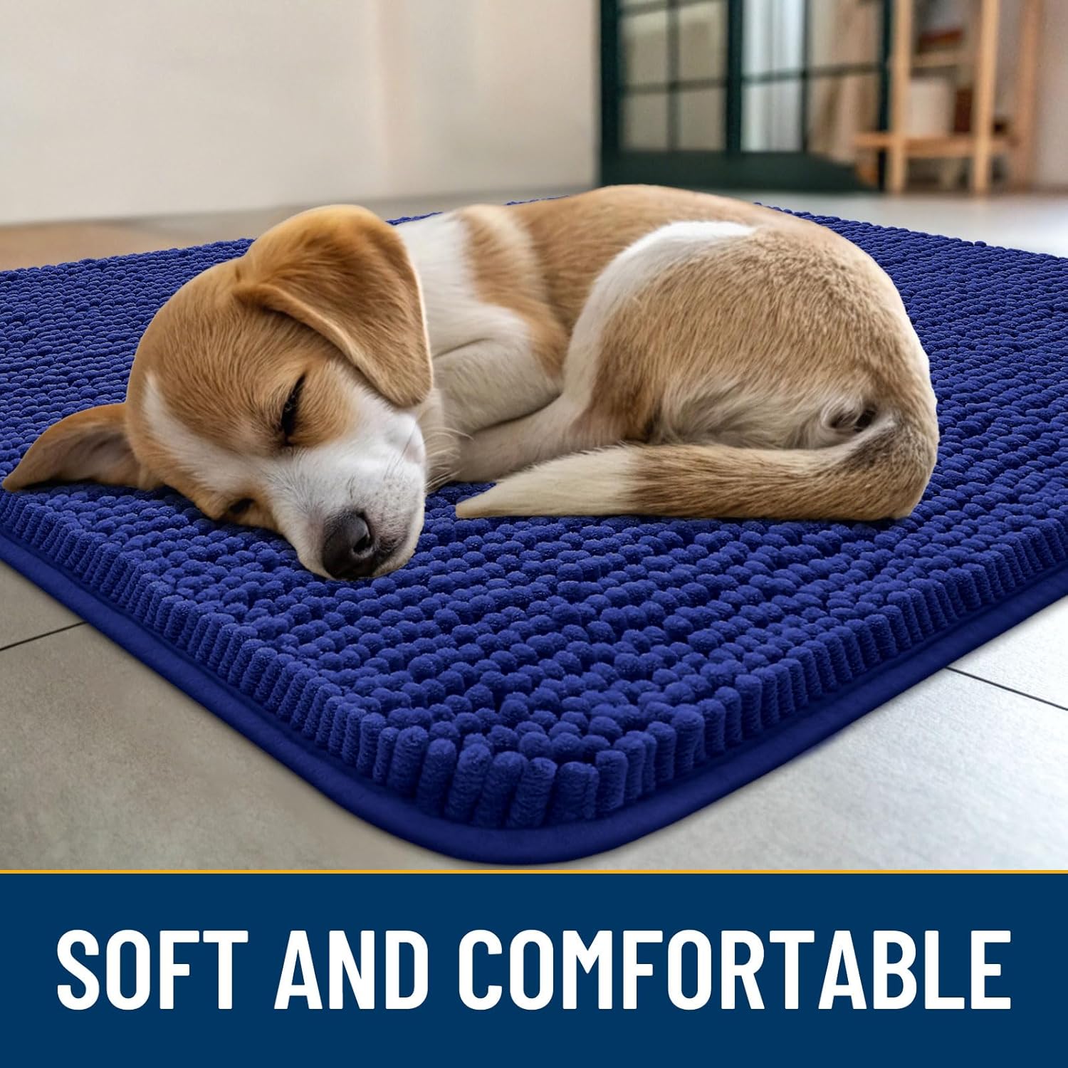 Smiry Dog Door Mat for Muddy Paws 47x24, Absorbs Moisture and Dirt Doormat, Non-Slip Washable Quick Dry Chenille Front Door Mat Indoor Entrance, Entryway Carpet for Inside Floor, Navy Blue