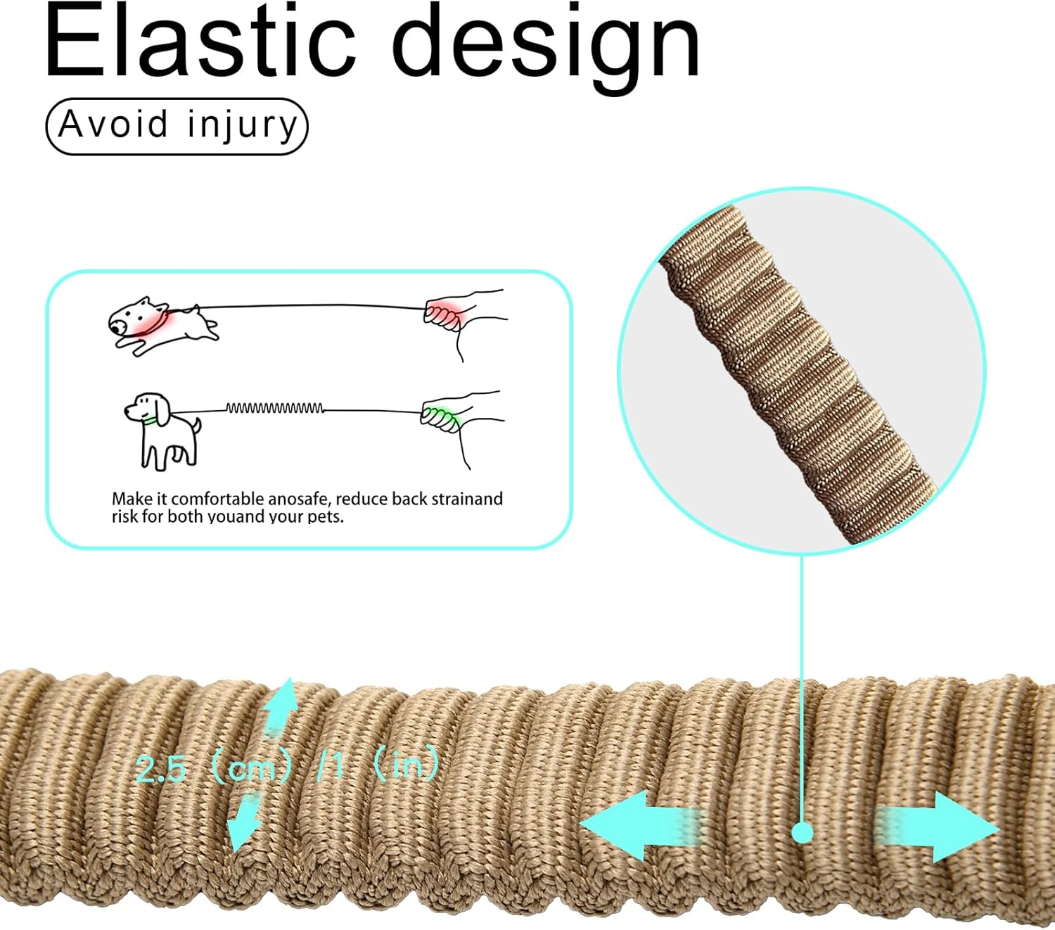 - Traffic Handle Control: Short Bungee leash allows you to control your dog, Shock-absorbing Bungee to reduce strain during Dog pulling suddenly, minimizing shock, back strain and muscle damage caused by excessive pulling