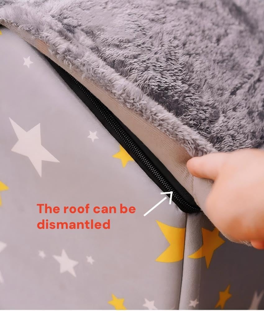 Scnbom Dog House Indoor Puppy Cave Cat Nest Kennel Pet Bed Portable Memory Sponge Foldable Houses with Cushion (Grey, L:Size fits 14kg/30lbs (Pets))