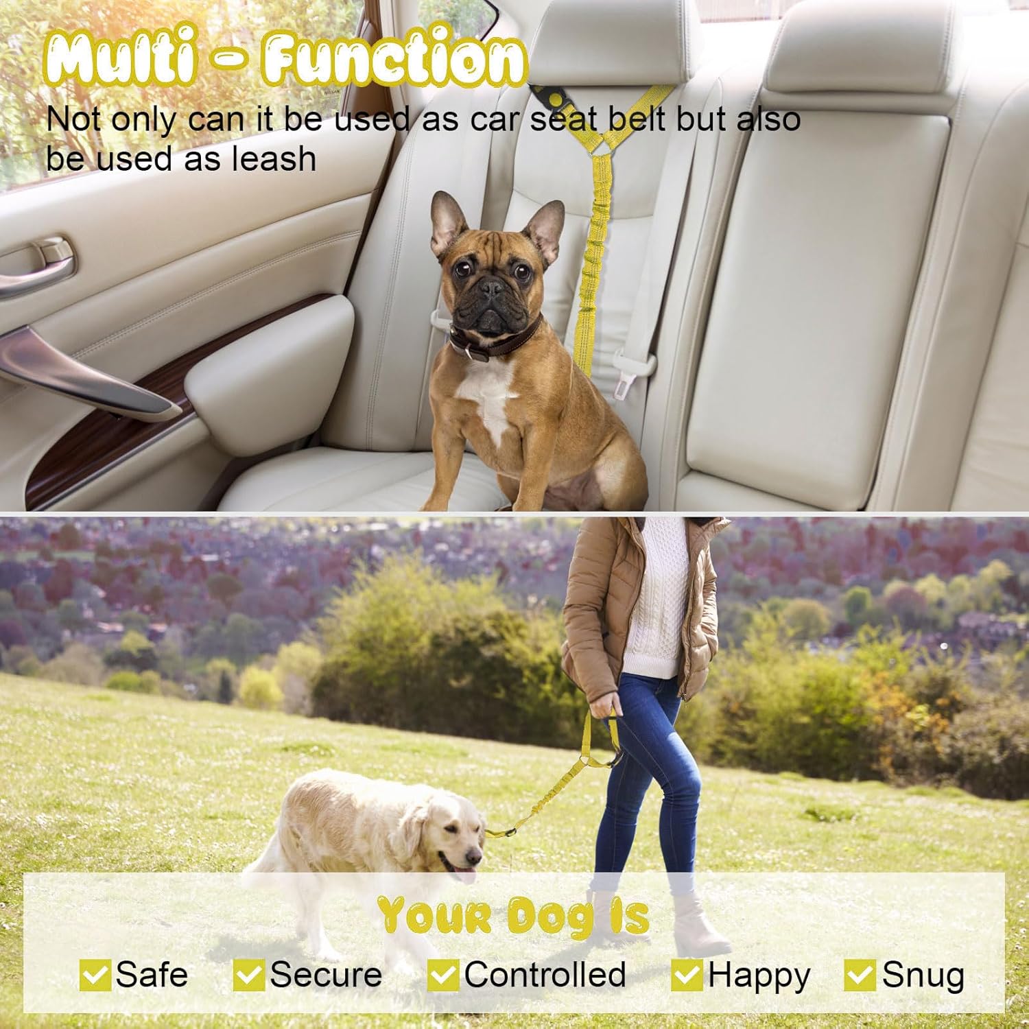 - HIGH QUALITY: Made of high quality nylon fabric to ensure safety, features the solid zinc alloy swivel snap,elastic bungee and quality buckles, The reflective stitching design makes it great for night time use. The elastic bungee helps dog prevent jerking with sudden movement. the pet car seat belt ensures the most safest traveling for your pet, and provides a most relaxing driving experience for you.