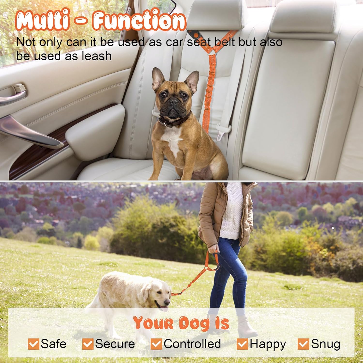 - HIGH QUALITY: Made of high quality nylon fabric to ensure safety, features the solid zinc alloy swivel snap,elastic bungee and quality buckles, The reflective stitching design makes it great for night time use. The elastic bungee helps dog prevent jerking with sudden movement. the pet car seat belt ensures the most safest traveling for your pet, and provides a most relaxing driving experience for you.