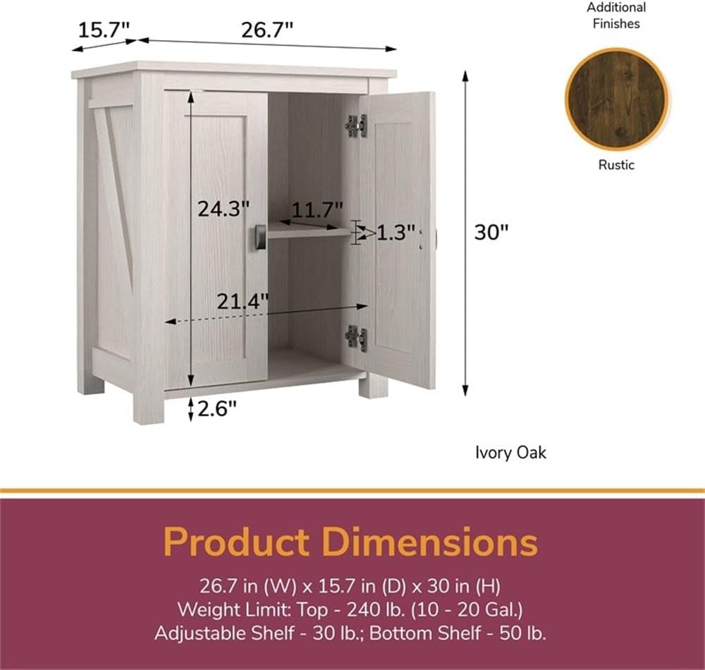 - Assembled dimensions: 30”H x 26.7”W x 15.67”D