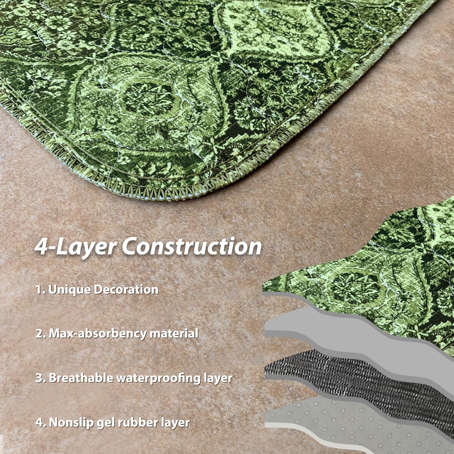 nunubaby Washable Pee Pads for Dogs, Stylish, Non-Slip and Leak-Proof Pee Pads. Reusable Potty Pads for Dogs for Crates and Floors.(Green/Multi, 24" x48")