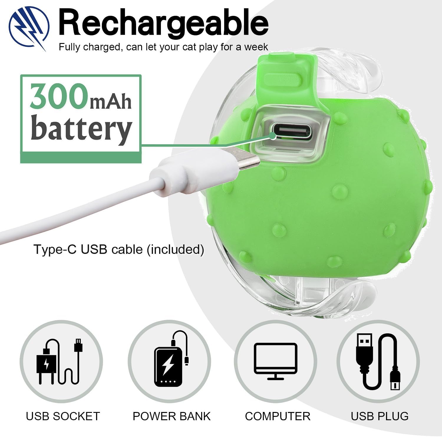 - Fast Charging & Eco-Friendly - USB Type-C rechargeable (cable included); 300mAh rechargeable battery and easily fully charged in 30 mins, no disposable batteries needed. Non-toxic silicone and ABS materials withstand scratches, convenient for cleaning.