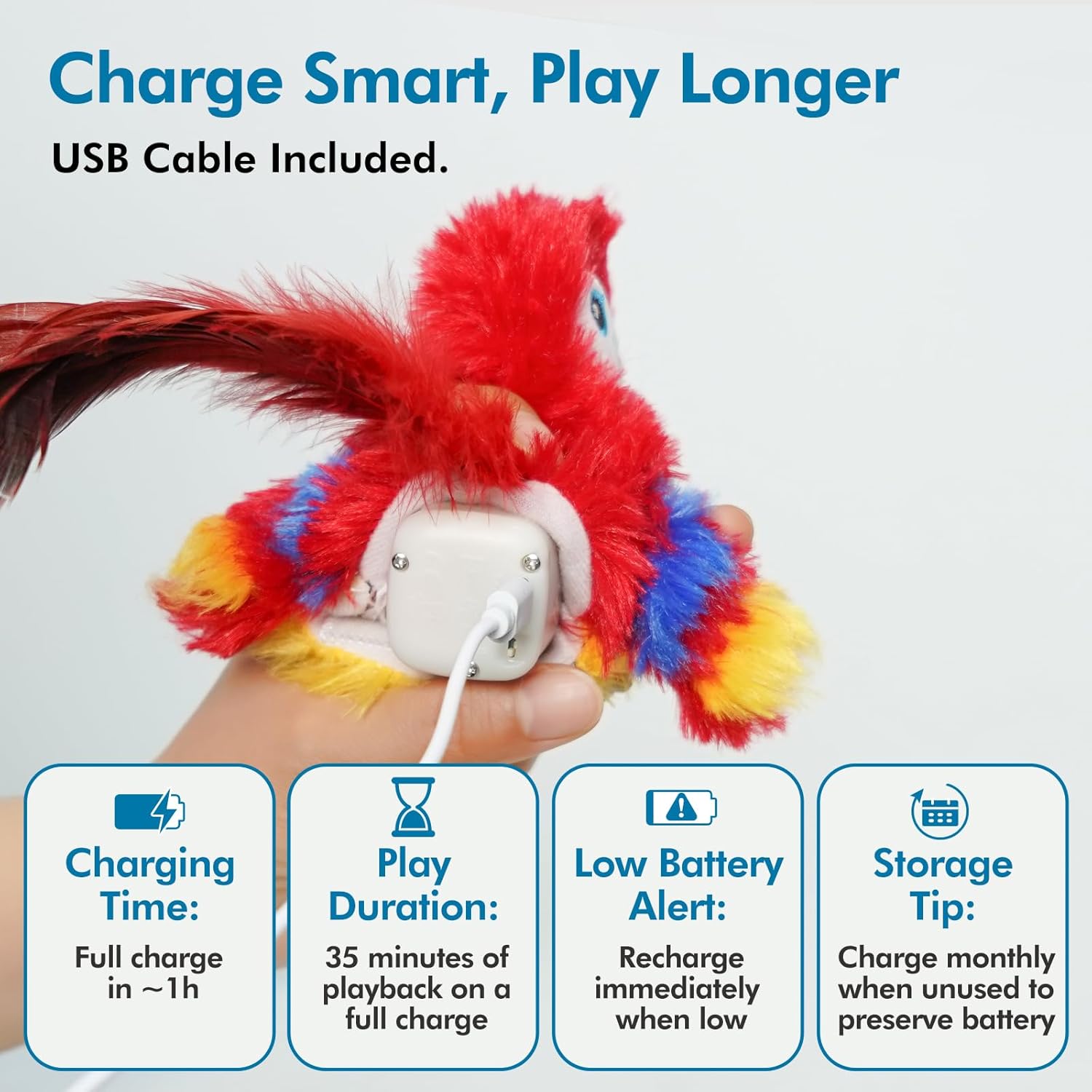 - 【USB Rechargeable】With a built-in rechargeable battery, you can easily charge the interactive cat toy using the included micro USB cable (power adapter not included). Two hours to fully charge.