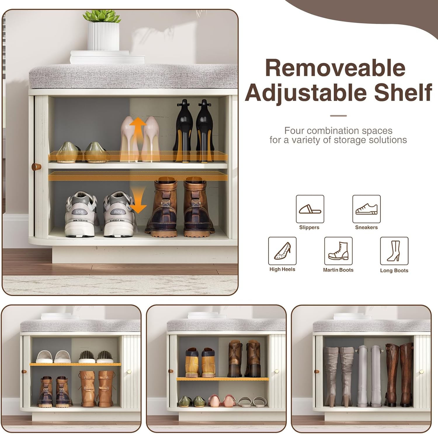 - Multipurpose Storage Solution for Small Space: With two removable shelves, it can be freely repositioned to hold shoes at different heights or other household items such as blankets and pillows, this storage bench is ideal for organizing your room