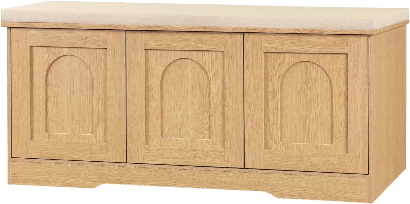 - 【Effortless Push-to-open Door】Feature a fully enclosed design with a press-to-open mechanism, keeping shoes clean and tidy while avoiding accidental bumps against door handles during use. Reasonable height and soft cushion let you change shoes by sitting on the bench more comfortable without bending down or squatting