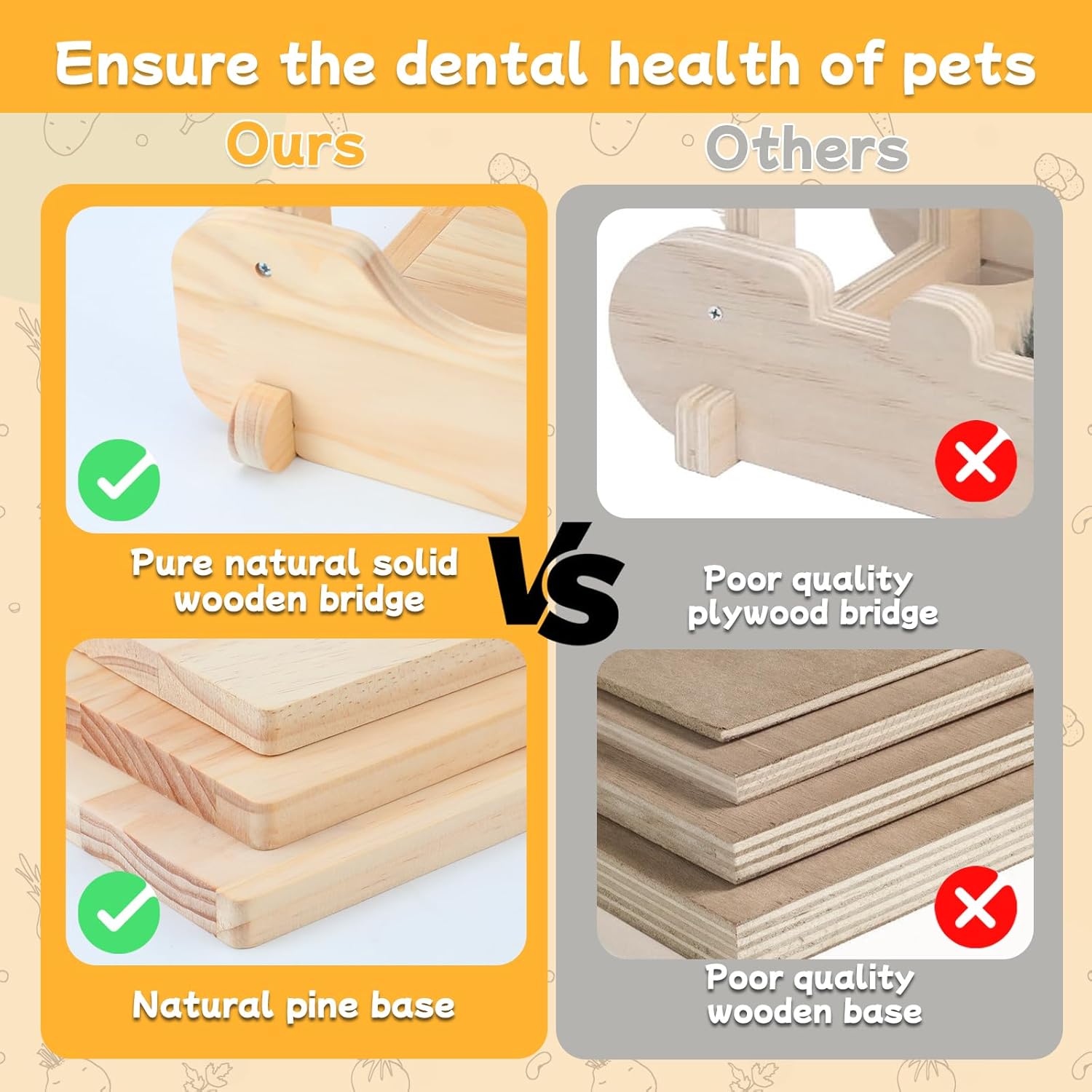 - Safety Protection: This chinchilla bridge is made of high-quality solid pine wood. Natural pine wood satisfies pets' innate chewing instinct, ensuring that each chewing does not harm their teeth. The wooden platform is made of natural kiln dried pine wood, without spray paint, and has been finely polished to a smooth and burr free surface, protecting your furry friend's soft paws and body from harm.