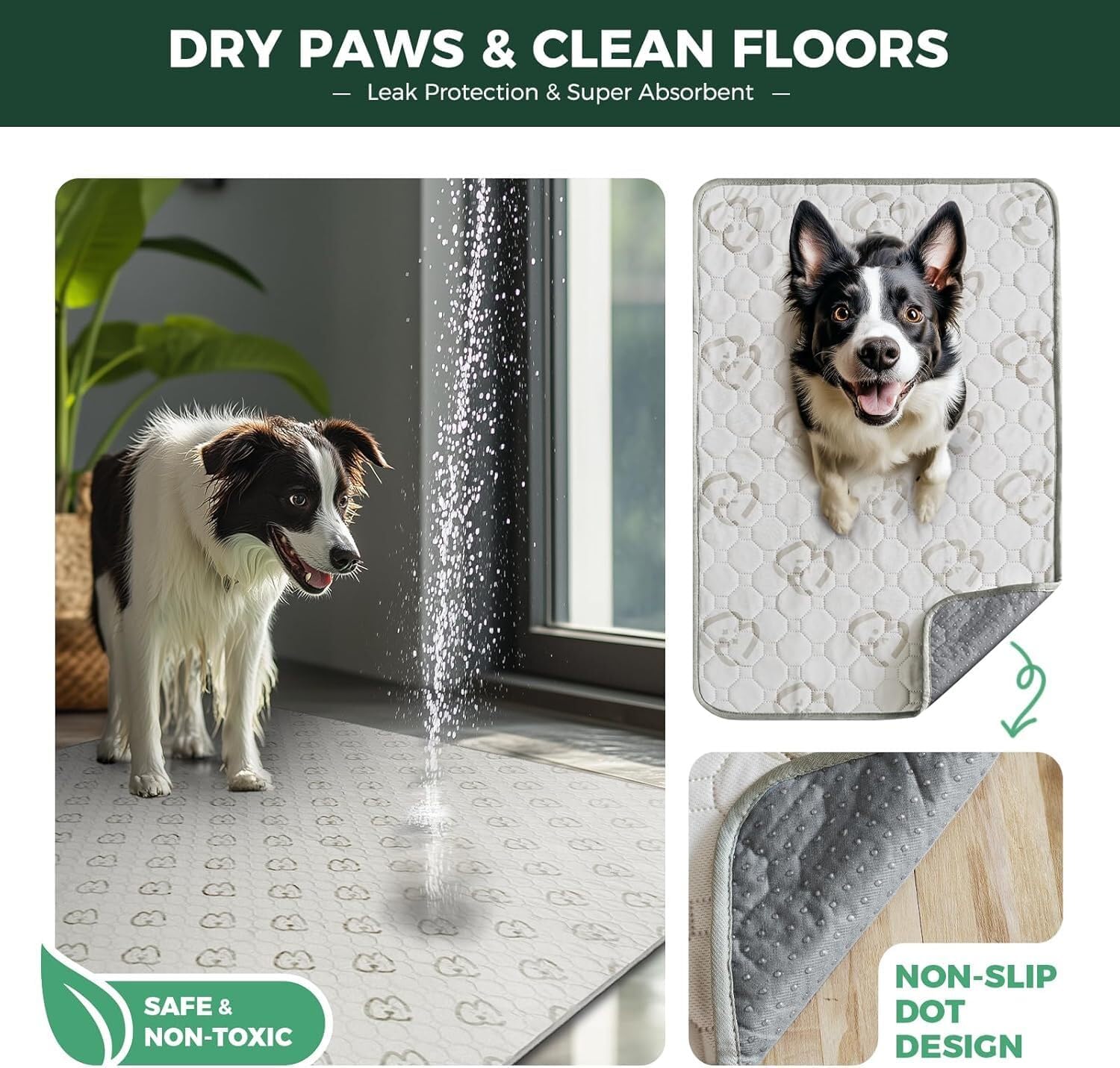 - Over 100x Reusable & Eco-friendly: Our puppy mats are machine washable and built to last over 100 uses. These reusable puppy pads for dogs are an eco-friendly, cost-saving choice — our dog training pad costs 5 times less per use than disposables.