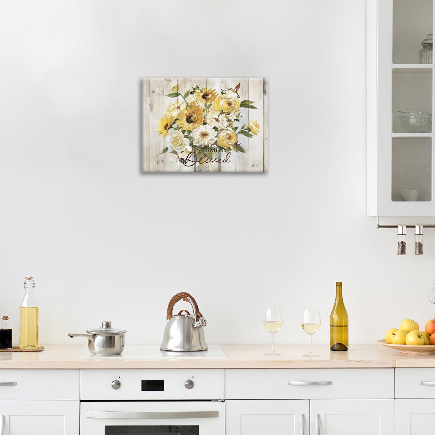 Sunflower Bathroom Pictures Wall Art, Simple Blessed Floral Bathroom Wall Decor, Flower Framed Painting Canvas Artwork for Bedroom Living Room Decorations 16"L x 12"W