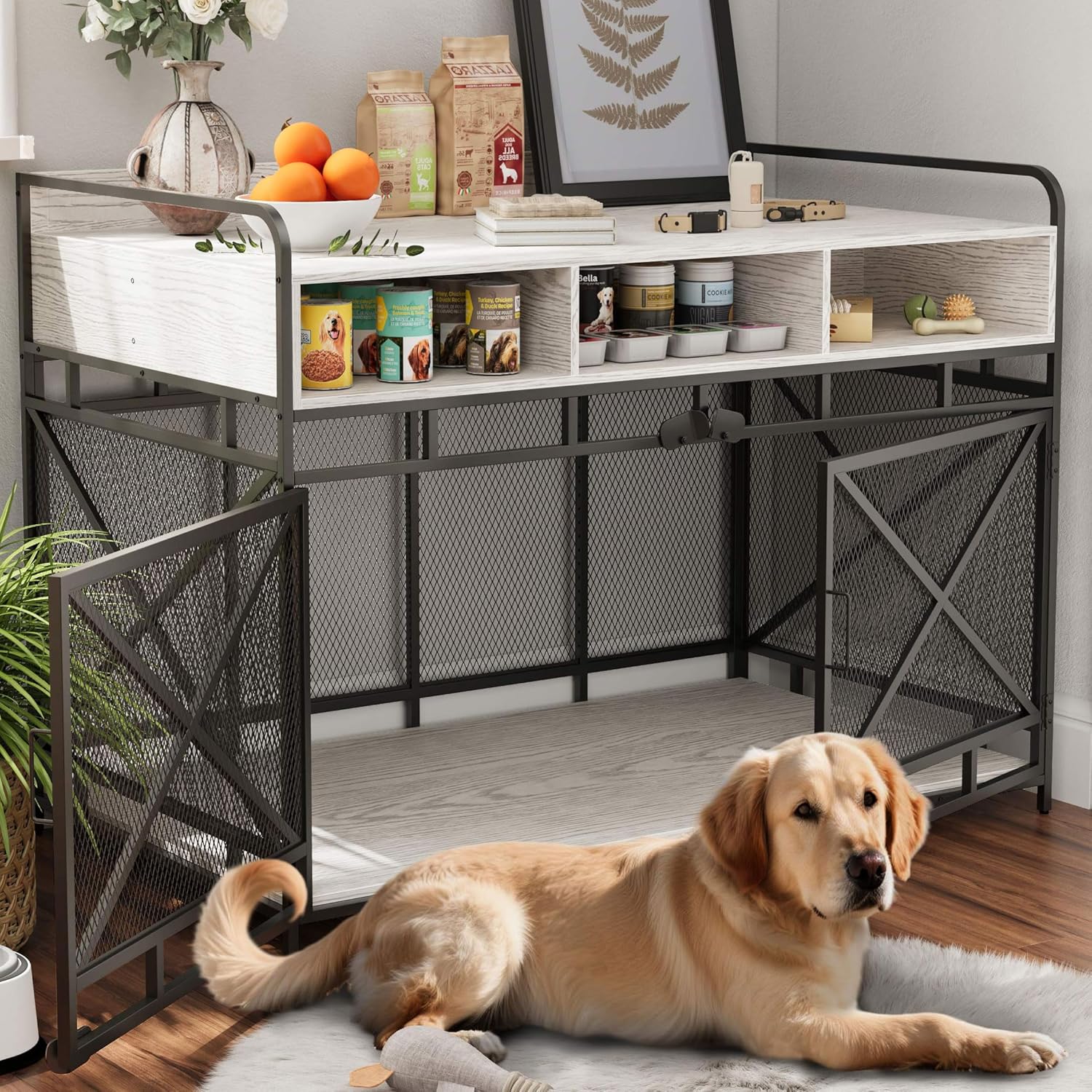 - Chew-Proof & Heavy-Duty Construction: Built to Resist Even the Most Determined Chewers-Constructed with sturdy metal wire mesh and reinforced with a robust metal cross bold, our dog kennel furniture is designed to withstand chewing and tearing, providing a secure space for your pet. The xl dog crate furniture offers ample space for larger breeds, ensuring your dog has plenty of room to relax comfortably. This is the perfect solution for those looking for furniture dog crate large dog.