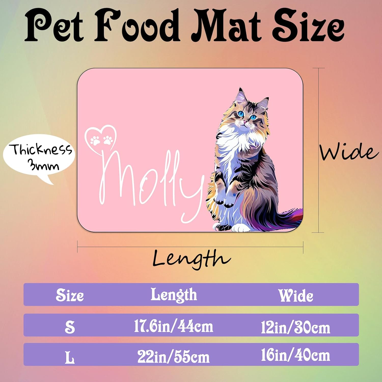- Ideal Gift for Pet Lovers:Looking for a thoughtful gift for a fellow pet enthusiast? Our Personalized Dog & Cat Feeding Mat is the perfect choice. Whether it's for a birthday, Christmas, or just to show you care, this customized pet gift will surely delight any cat or dog owner.