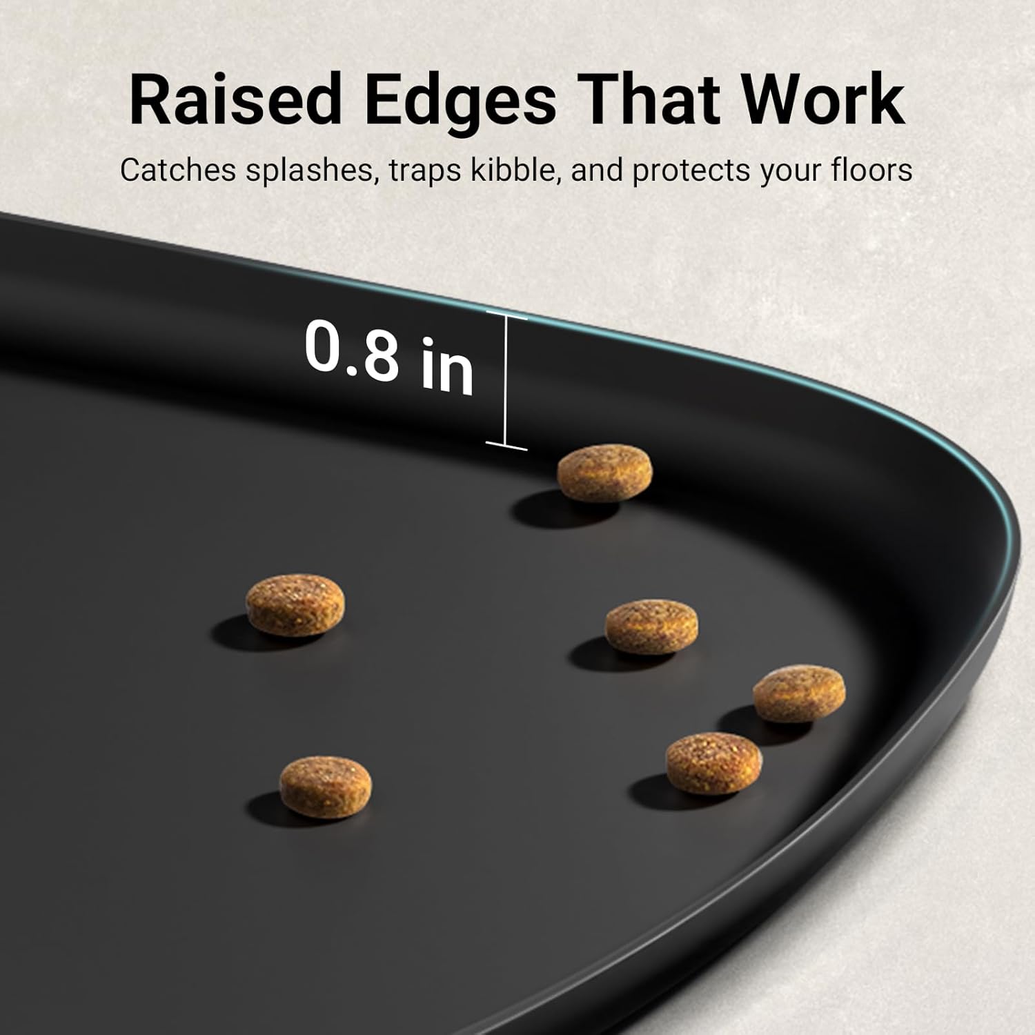 - Stop Messes, Start Happy Mealtimes: Designed with a 0.8inch high rim around all sides, the pet food mat keeps spills, water splashes, and food crumbs securely contained. The dog water mat keeps floors dry and giving messy eaters freedom to enjoy food