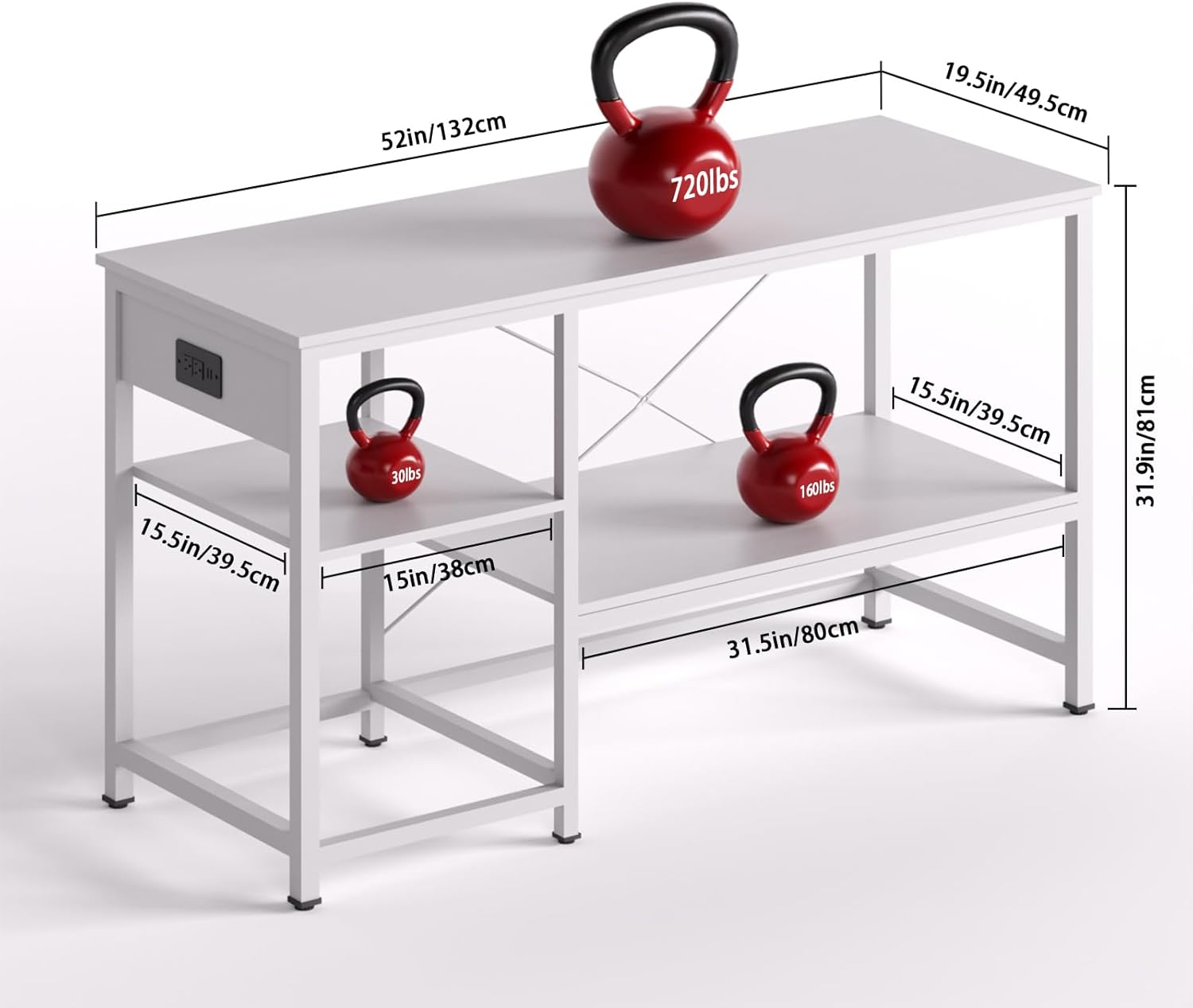 50-75 Gallon Fish Tank Stand with Power Outlet & LED Light, Metal Aquarium Stand with 3 Tier Adjustable Storage Shelves, Tank Stand for Reptile Tank, Turtle Tank, 52" L*19.5" W, White