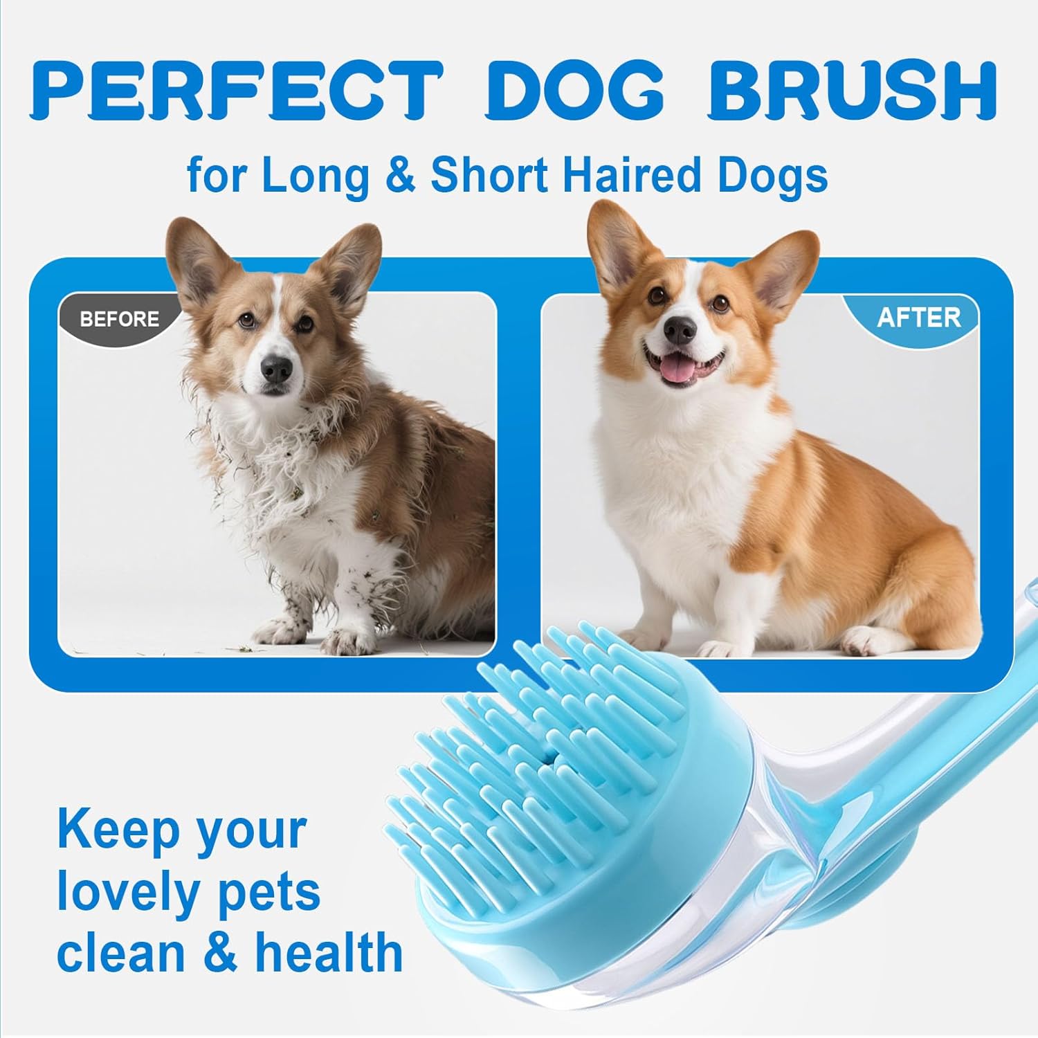 - 【2025 Newly Upgraded Dog Shower Brush】Features a 5mm thick brush head and an innovative press-type liquid dispensing structure. The anti-slip handle fits the palm curve, allowing for precise control of the amount of hair care with one hand. Compared with ordinary pet brushes, it can remove dog hair easily and quickly.