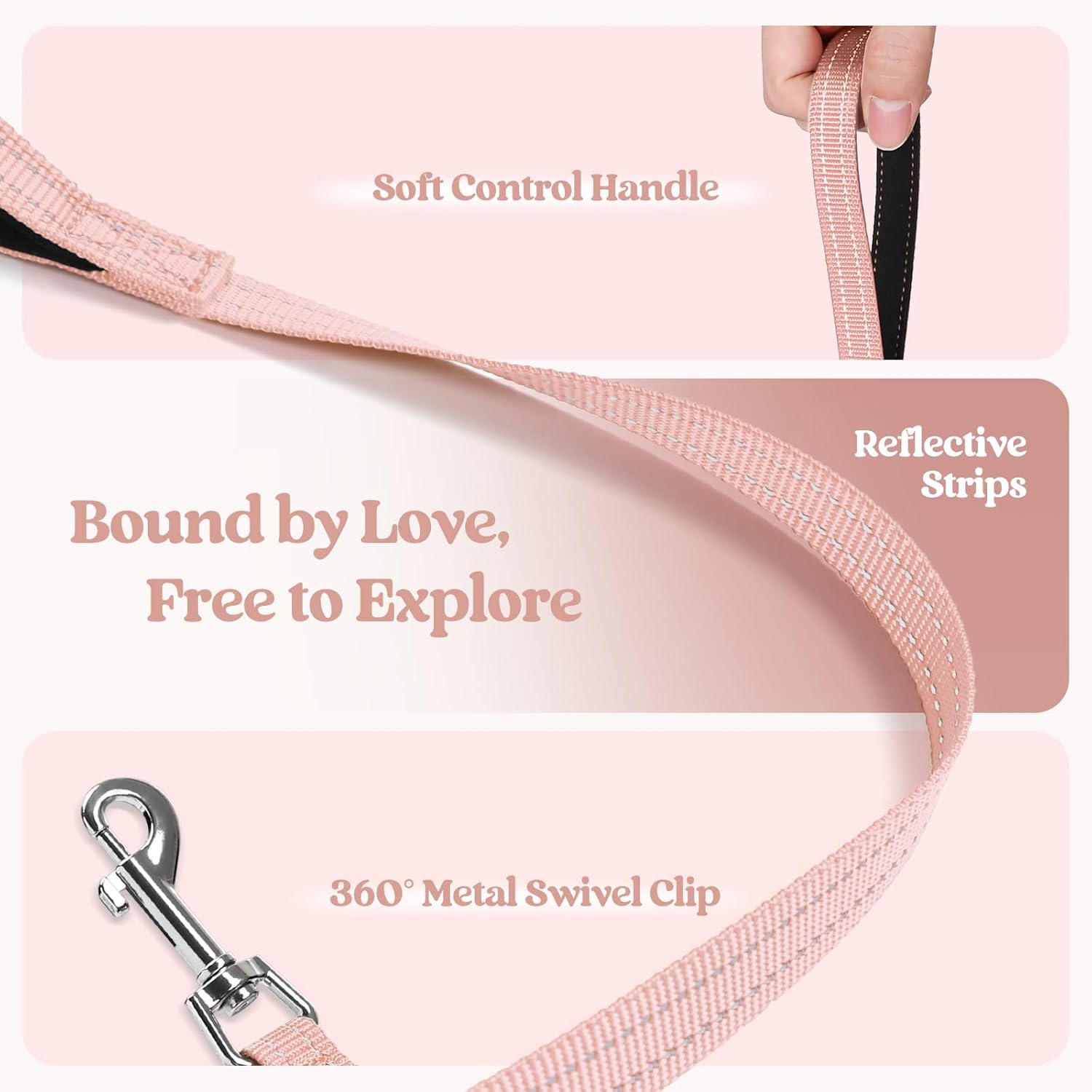 rabbitgoo Dog Harness Small Medium Sized and Leash Set, Step in Soft Light Puppy Vest, Breathable Mesh Pet Harness, Reflective for Safe Outdoor Walking, Pink L