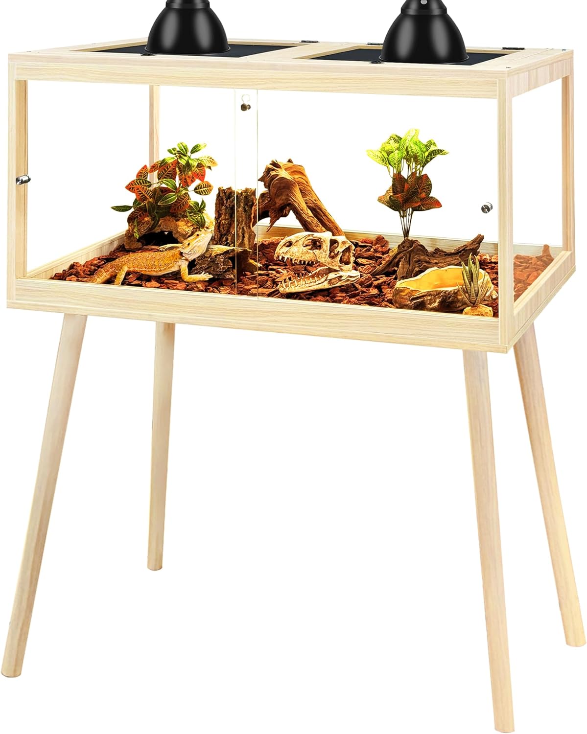 - 【Premium Wooden Reptile Habitat】Give your reptiles a safe and dependable home. Crafted from solid wood core with double sided water-repellent coating, this enclosure is built to last while maintaining a dry and stable environment. Specially designed for terrestrial reptiles (not for aquatic species), it provides a reliable space where your pet can thrive every day.