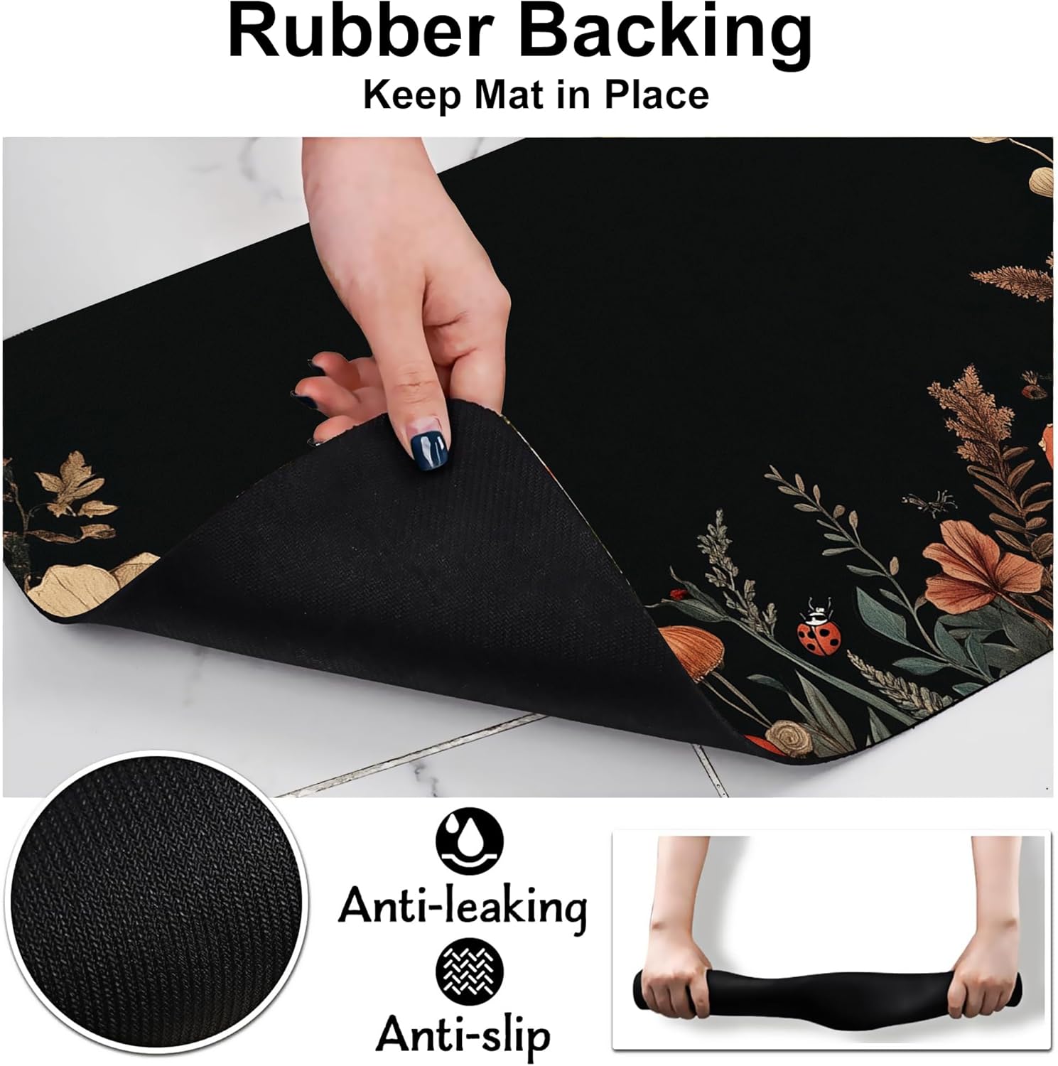 Vintage Mushroom Flower Pet Cat Dog Food Mat-Absorbent Quick Dry Feeding Placemat for Water and Food, No Stains Rubber Base Mat for Indoor Use, Pet Accessories 16"x24"