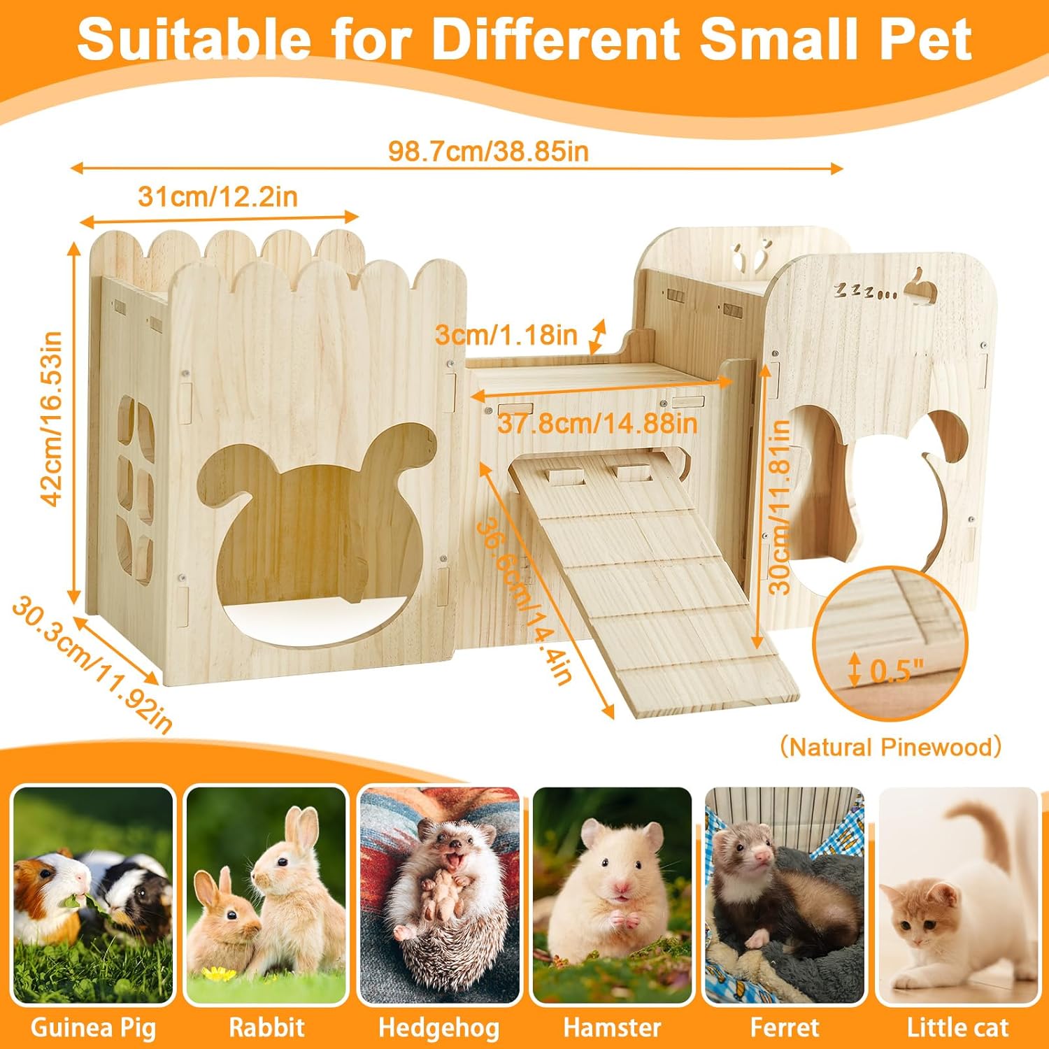 - 【Versatile for All Small Pets】Ideal for rabbits, guinea pigs, ferrets, cats, and more! Holds 2X the weight of flimsy 0.2" composite-board houses. A playful retreat they’ll love.