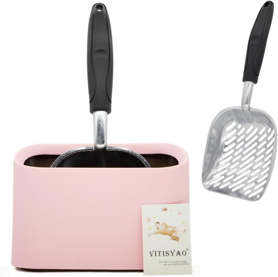 - SCOOP CADDY & LITTER CONTAINER - Cat litter scooper comes equipped with a convenient stand, which is a must-have for maintaining a clean and healthy home environment. The double-layer design of the scooper caddy itself can also be used as a trash can