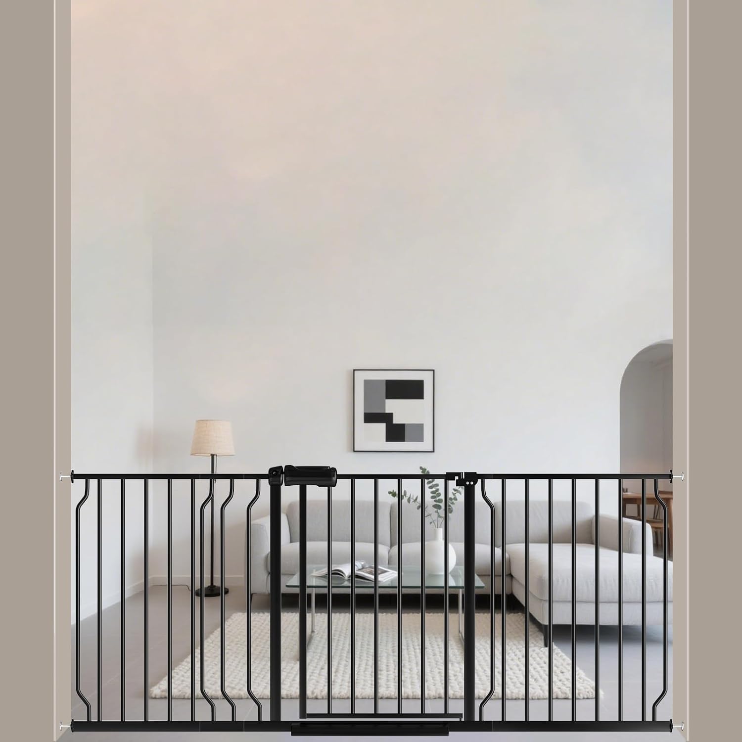 - 【Safe for Baby】Your curious crawlers will be "blocked" by the safety extra wide baby gate because we design the double-lock safety release which makes it difficult for toddlers to open the gate ,but adults can operate with one hand and pass quickly.
