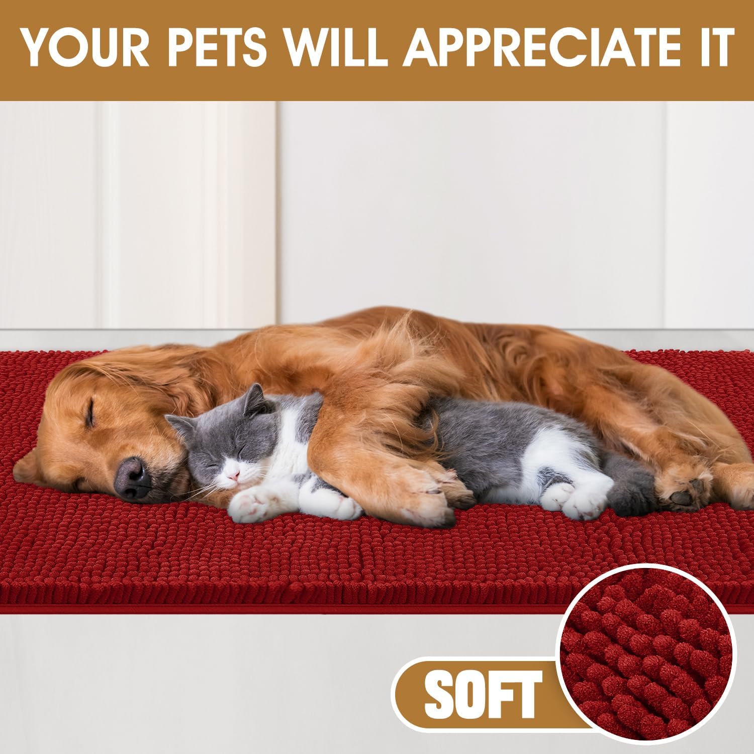 Extra Large Dog Door Mats for Muddy Paws, Chenille Absorbent Dog Mats, Non Slip Heavy Mud Mat for Dogs, Soft Pet Mat for Entryway, Mud Paws, Inside Floor,60" x 36", Red