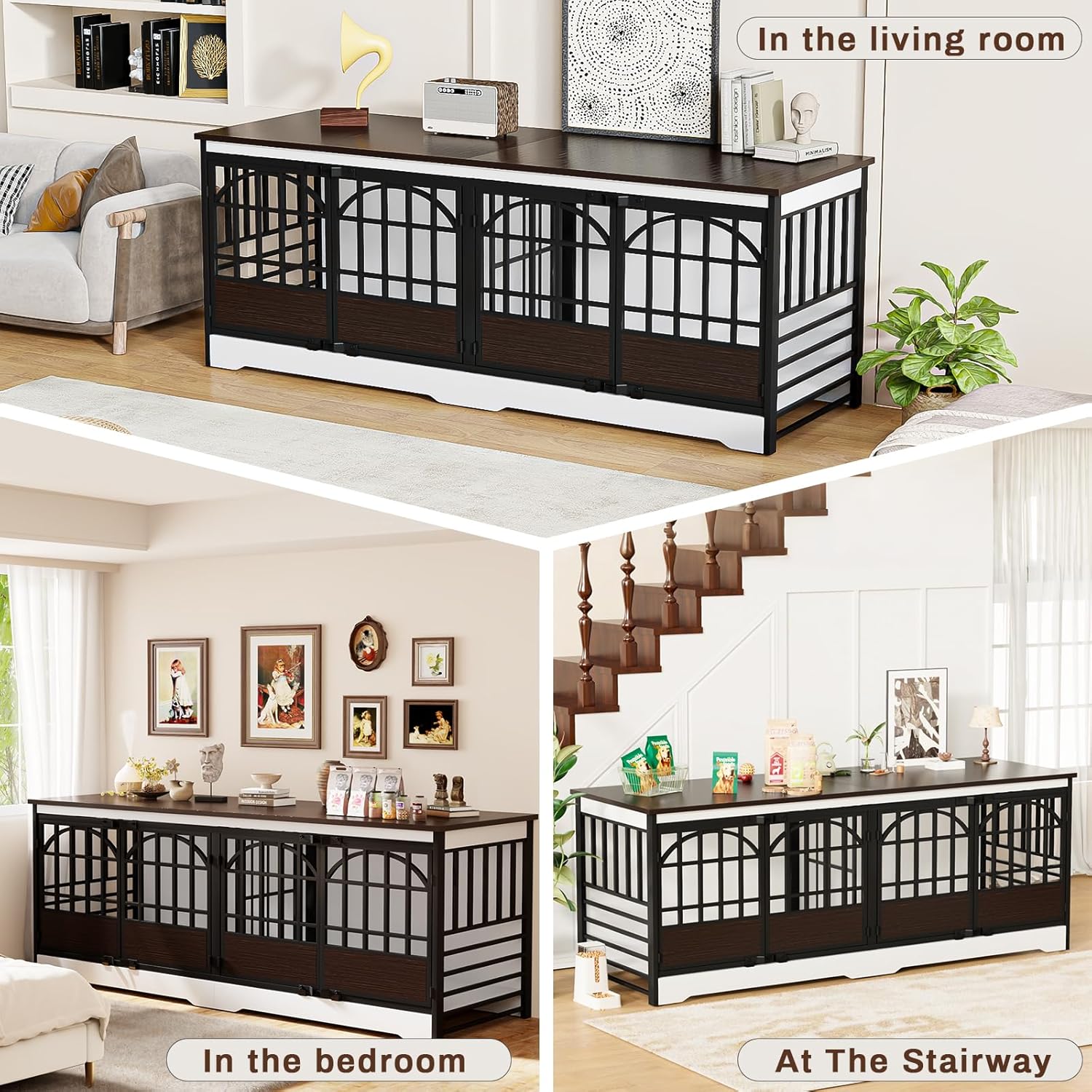 - MULTIFUNCTIONAL DOG CRATE TABLE - The simple retro shape of this dog crate can perfectly fit into various home styles, and the flat surface of the top can be used to place a TV, dog food or storage items. The extra-large size ensures space for your dog to move around without taking up too much room.