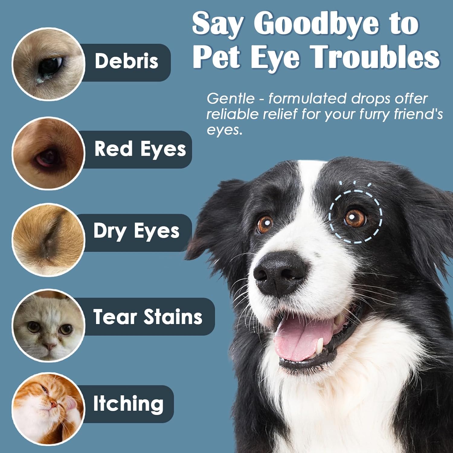 - SOOTHE PETS' TROUBLED EYES: Significantly ease pets' eye discomfort caused by seasonal allergies, smog, and pollen. Provide relief from frequent blinking, dryness, redness, and excessive tearing while delivering continuous soothing comfort