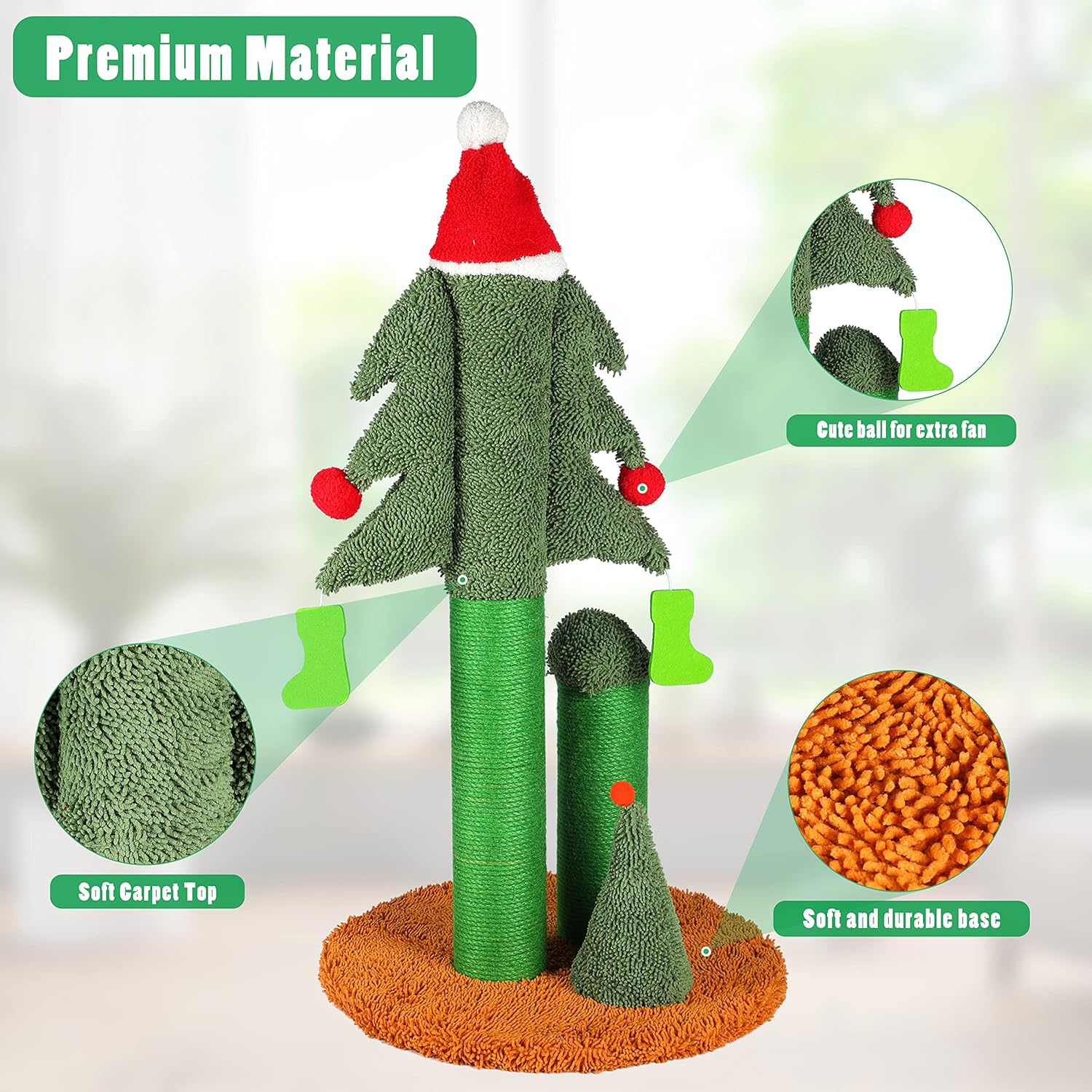 - Premium Material: The base and the top are covered with soft carpet that feels good on paws. The scratcher has a safe and durable base made of heavy chipboard, avoid tipping and shaking.