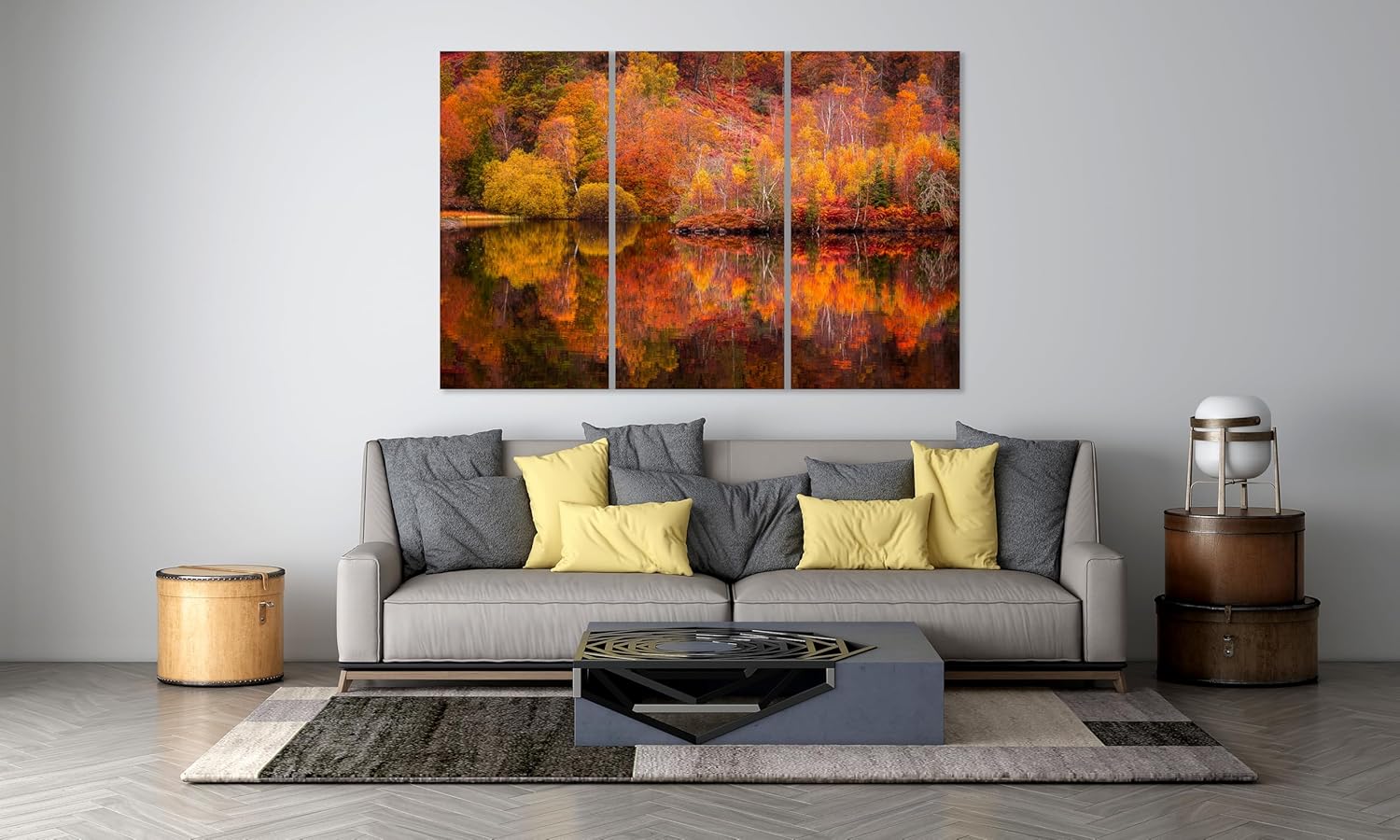 Nature Wall Art Prints - Ocean Forest Mountain Lake Canvas Landscapes - Small to Extra Large Living Room Bedroom Kitchen Bathroom Décor (Autumn Forest with Lake, 39L" x 59W" - 3 Panels)